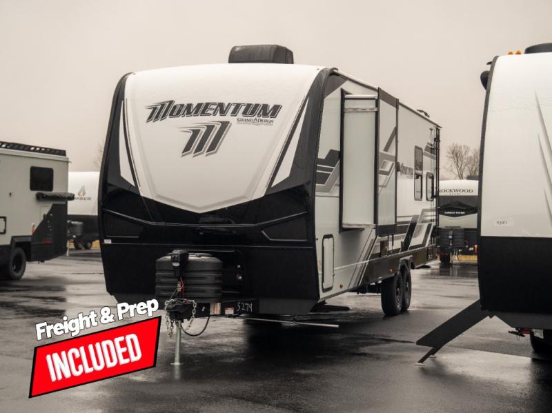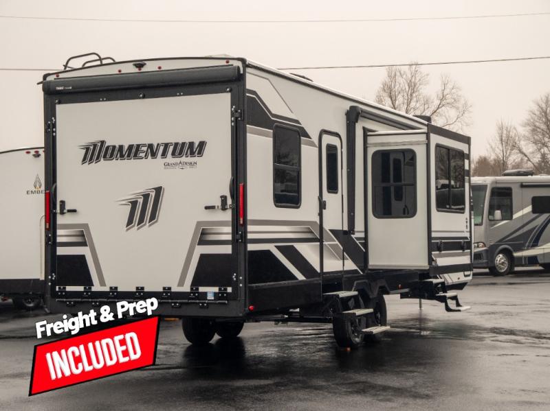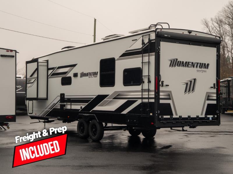 Are you looking for adventure and fun? The Momentum G-Class toy hauler by Grand Design will help you find it! You can explore during any season you choose with the Insulation Package that includes a heated and enclosed underbelly with suspended tanks, a high-capacity furnace, a moisture barrier floor enclosure, and cabinet-mounted heat ducts. Each model includes a high capacity water pump, a dovetail rear end, and 2,500-LB tie-downs anchored into the chassis. Throughout the Momentum G-Class interior, you'll enjoy many comfortable features like large panoramic windows, a shower skylight, USB chargers in the bedroom, and residential cabinetry.