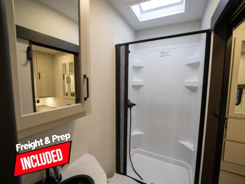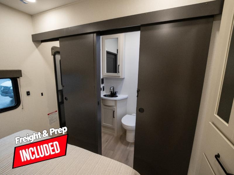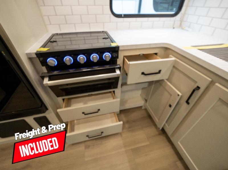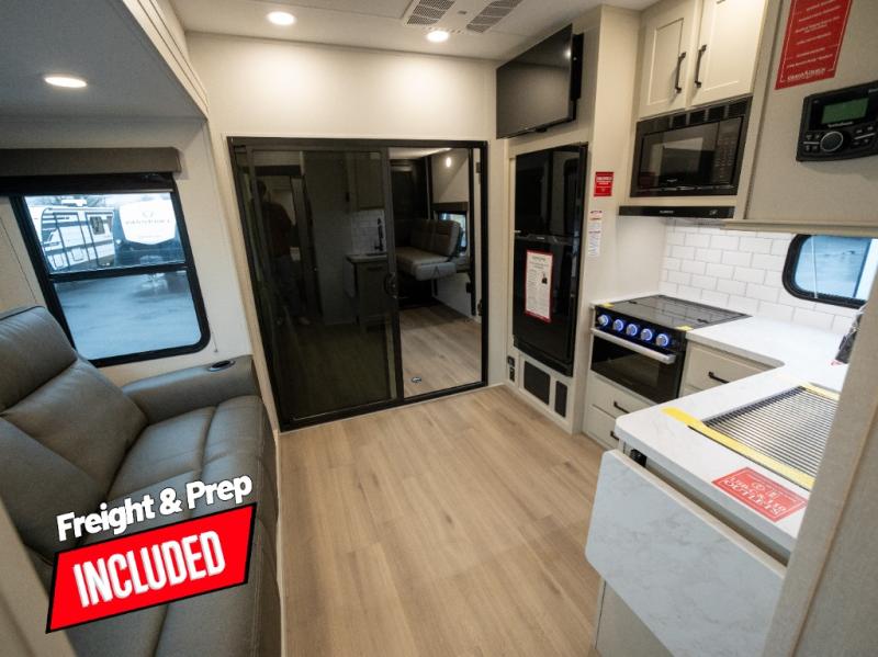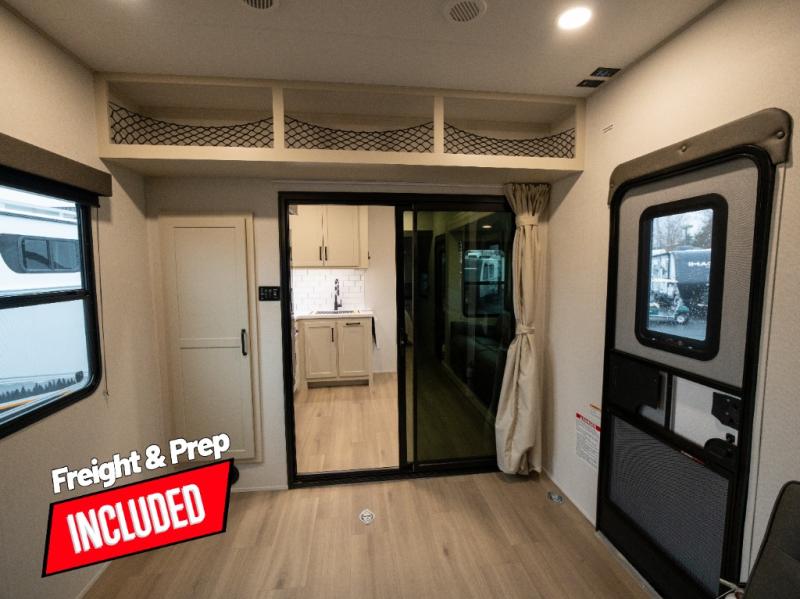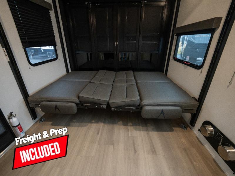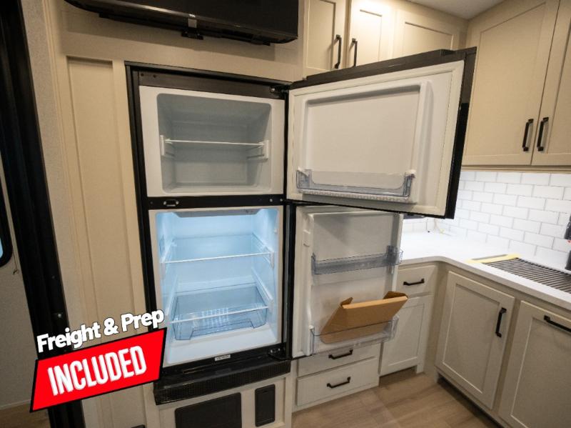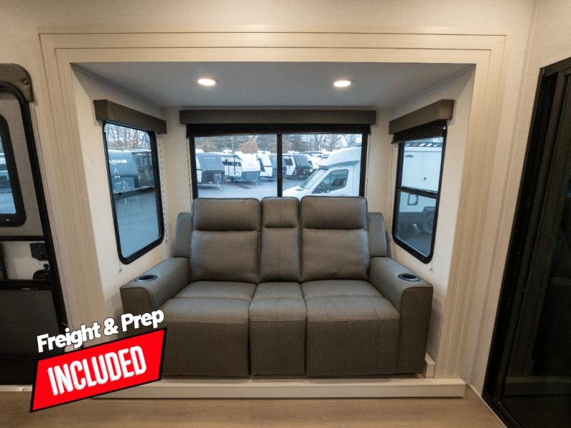 Start your engines for a fun weekend with your toys and your family in this Momentum G-Class toy hauler. The 11' separate garage includes Happi-Jac rollover sofas with a table and an optional top bed, plus a flip-up pet dish for your furry friends! There is even a second entry door which leads directly into the garage so that you don't have to walk through the entire trailer just to get to your cargo. In the front of this unit, you will have your own master suite that has private access to the residential walk-in shower in the dual-entry bathroom. The main living and kitchen area offers everything you need and would want, including theater seating and a TV with storage above the refrigerator!