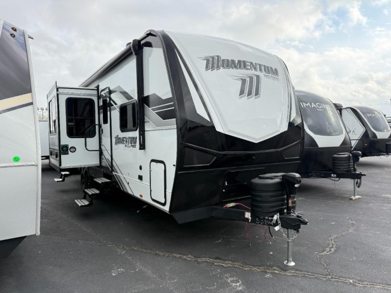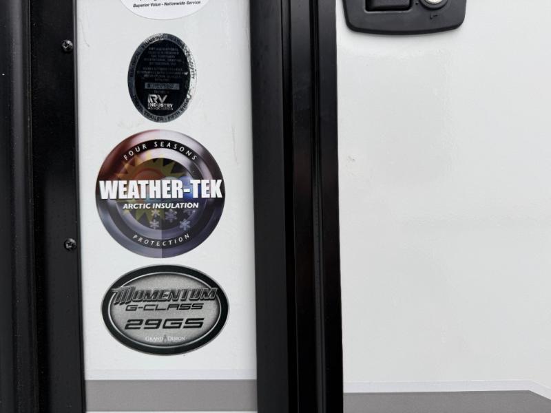 Are you looking for adventure and fun? The Momentum G-Class toy hauler by Grand Design will help you find it! You can explore during any season you choose with the Insulation Package that includes a heated and enclosed underbelly with suspended tanks, a high-capacity furnace, a moisture barrier floor enclosure, and cabinet-mounted heat ducts. Each model includes a high capacity water pump, a dovetail rear end, and 2,500-LB tie-downs anchored into the chassis. Throughout the Momentum G-Class interior, you'll enjoy many comfortable features like large panoramic windows, a shower skylight, USB chargers in the bedroom, and residential cabinetry.