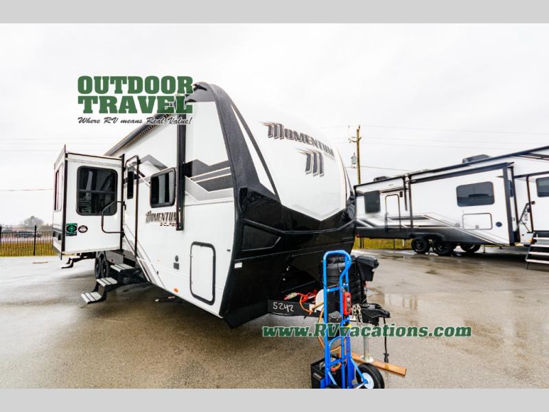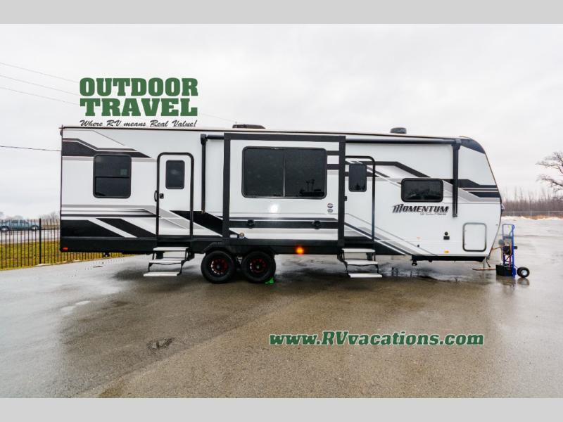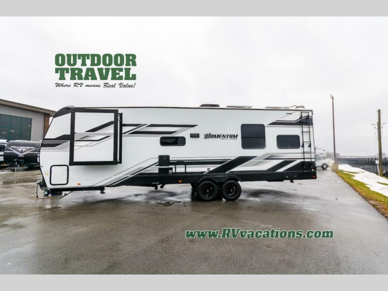 Are you looking for adventure and fun? The Momentum G-Class toy hauler by Grand Design will help you find it! You can explore during any season you choose with the Insulation Package that includes a heated and enclosed underbelly with suspended tanks, a high-capacity furnace, a moisture barrier floor enclosure, and cabinet-mounted heat ducts. Each model includes a high capacity water pump, a dovetail rear end, and 2,500-LB tie-downs anchored into the chassis. Throughout the Momentum G-Class interior, you'll enjoy many comfortable features like large panoramic windows, a shower skylight, USB chargers in the bedroom, and residential cabinetry.