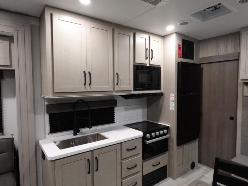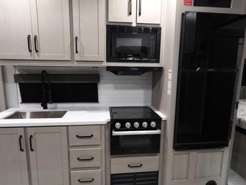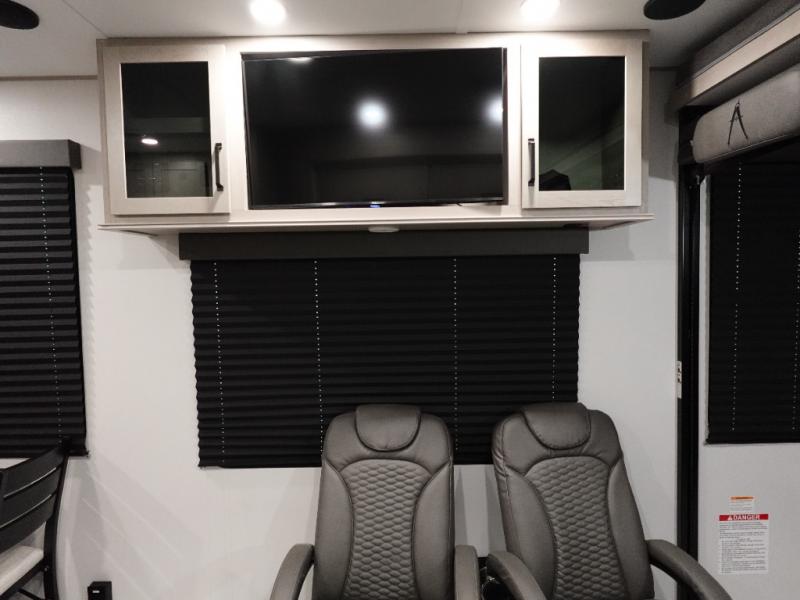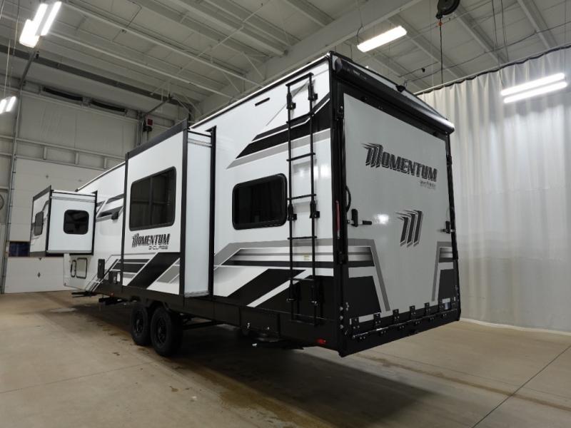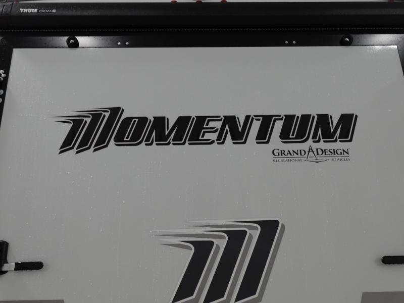 Are you looking for adventure and fun? The Momentum G-Class toy hauler by Grand Design will help you find it! You can explore during any season you choose with the Insulation Package that includes a heated and enclosed underbelly with suspended tanks, a high-capacity furnace, a moisture barrier floor enclosure, and cabinet-mounted heat ducts. Each model includes a 30-gallon fuel station with an interior and exterior gauge, a dovetail rear rend, and 2,500-LB tie-downs anchored into the chassis. Throughout the Momentum G-Class interior, you'll enjoy many comfortable features like large panoramic windows, a shower skylight, USB chargers in the bedroom, and residential cabinetry.