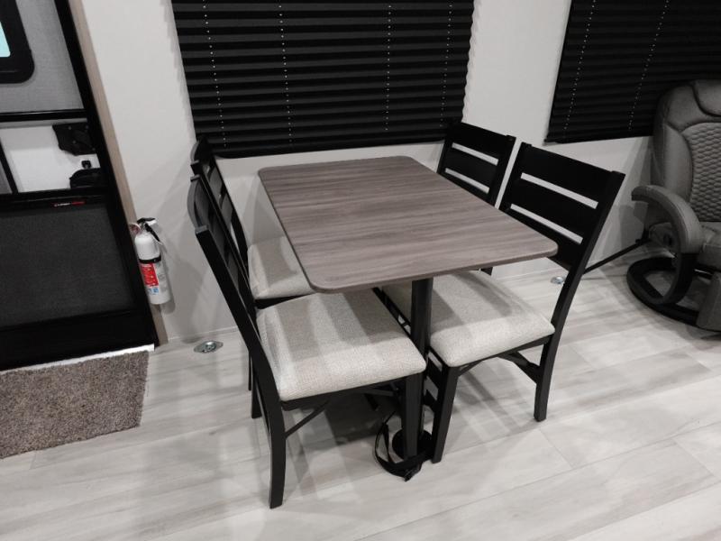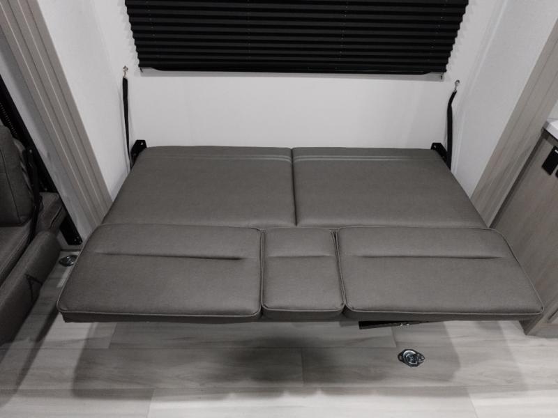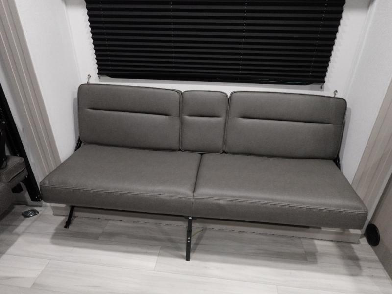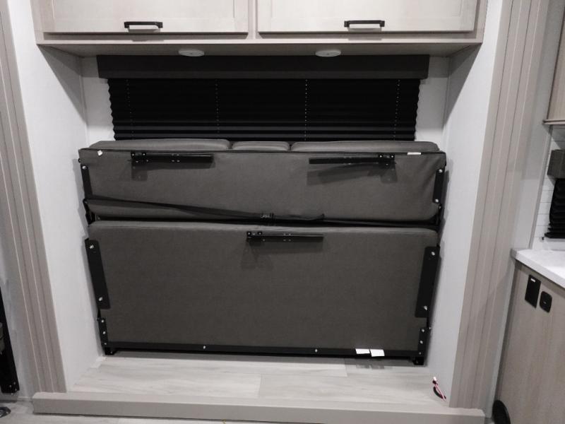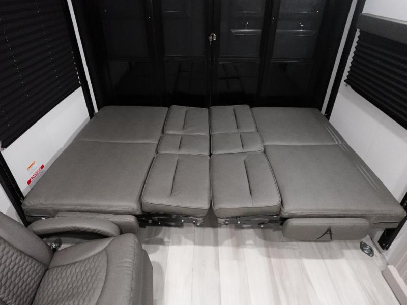 The whole family will love camping in this Momentum G-Class toy hauler! It features a front corner master suite with a king bed and an entrance into the dual-entry bathroom which has a walk-in shower with a skylight. The kitchen has everything you will need to create your best home-cooked meals including a three-burner range with oven. You can enjoy your meals at the free-standing dinette and then play a card game or relax on the Happi-Jac sofa. The Euro chairs would be a comfortable place to relax too. In the garage, there are Happi-Jac rollover sofas with a table and top bed above for added sleeping space!