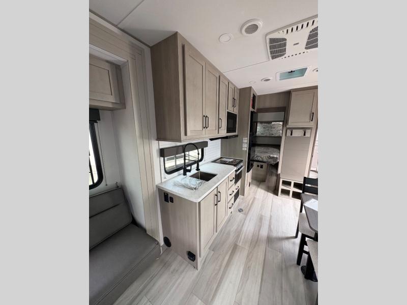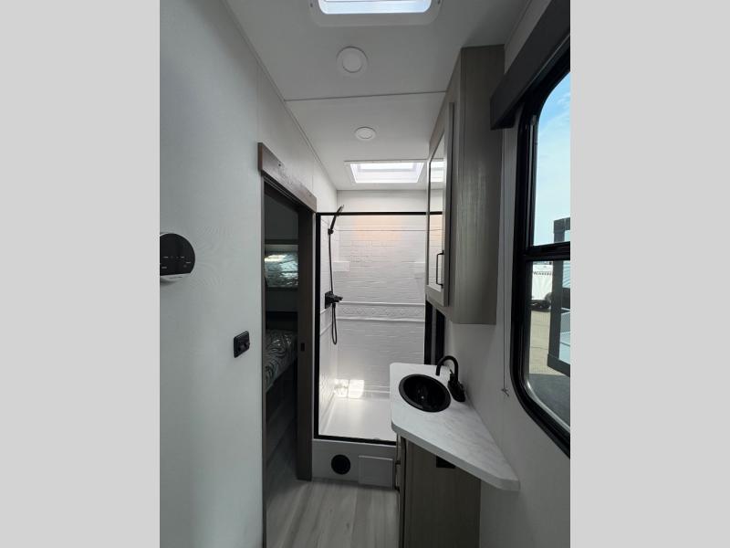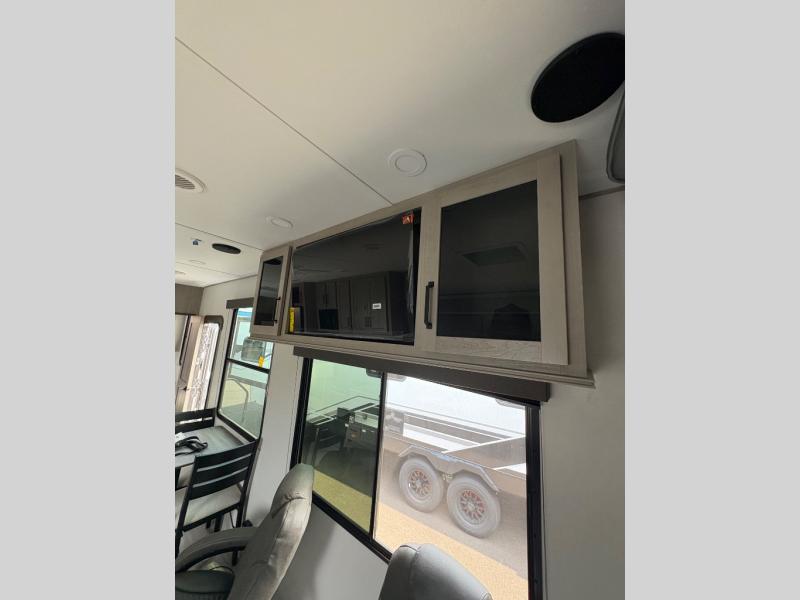 Are you looking for adventure and fun? The Momentum G-Class toy hauler by Grand Design will help you find it! You can explore during any season you choose with the Insulation Package that includes a heated and enclosed underbelly with suspended tanks, a high-capacity furnace, a moisture barrier floor enclosure, and cabinet-mounted heat ducts. Each model includes a 30-gallon fuel station with an interior and exterior gauge, a dovetail rear rend, and 2,500-LB tie-downs anchored into the chassis. Throughout the Momentum G-Class interior, you'll enjoy many comfortable features like large panoramic windows, a shower skylight, USB chargers in the bedroom, and residential cabinetry.