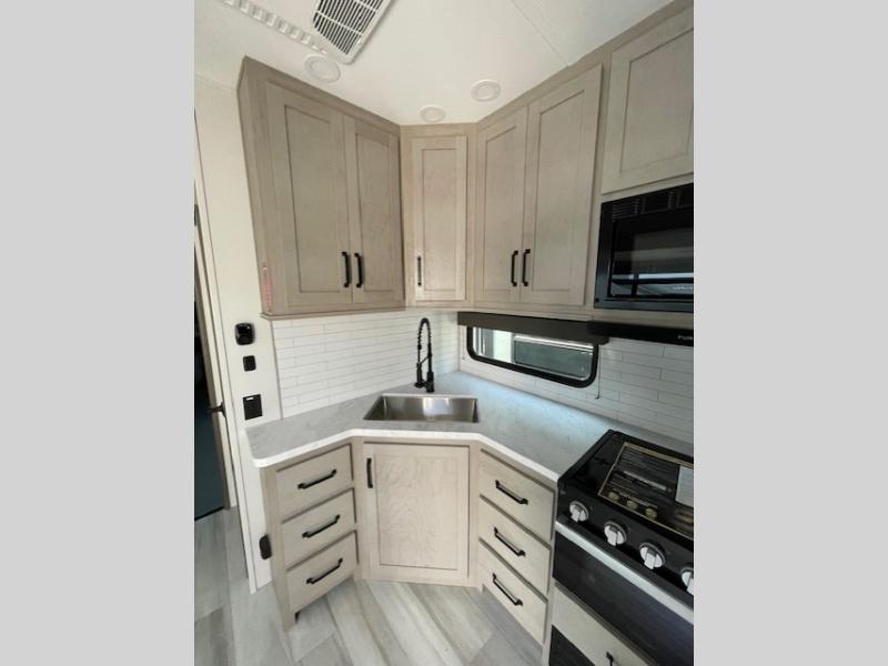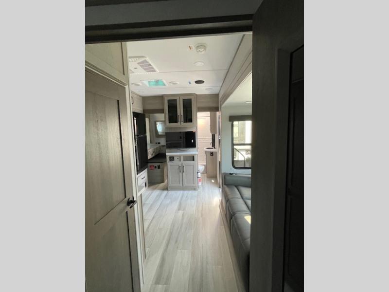 Are you looking for adventure and fun? The Momentum G-Class toy hauler by Grand Design will help you find it! You can explore during any season you choose with the Insulation Package that includes a heated and enclosed underbelly with suspended tanks, a high-capacity furnace, a moisture barrier floor enclosure, and cabinet-mounted heat ducts. Each model includes a 30-gallon fuel station with an interior and exterior gauge, a dovetail rear rend, and 2,500-LB tie-downs anchored into the chassis. Throughout the Momentum G-Class interior, you'll enjoy many comfortable features like large panoramic windows, a shower skylight, USB chargers in the bedroom, and residential cabinetry.
