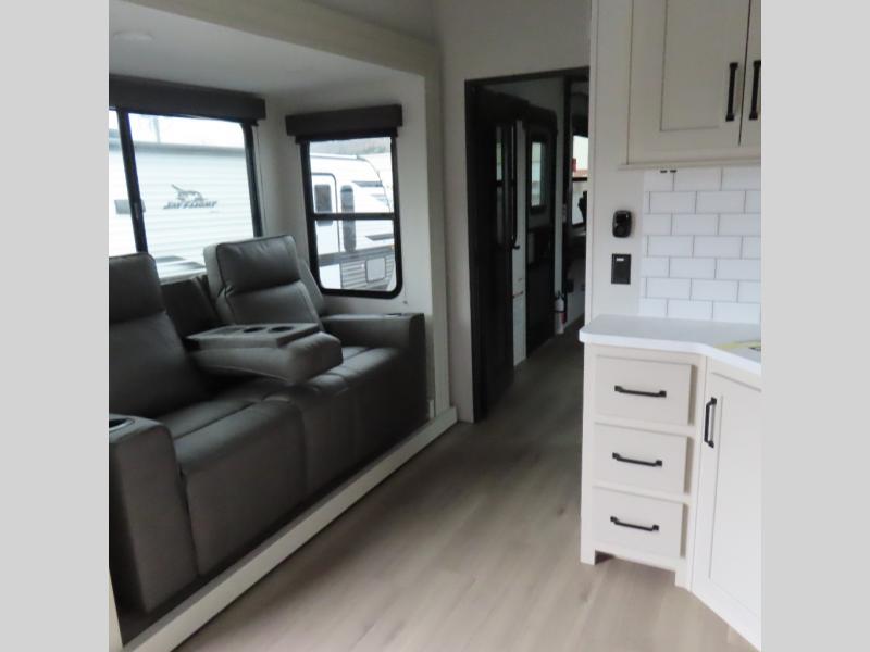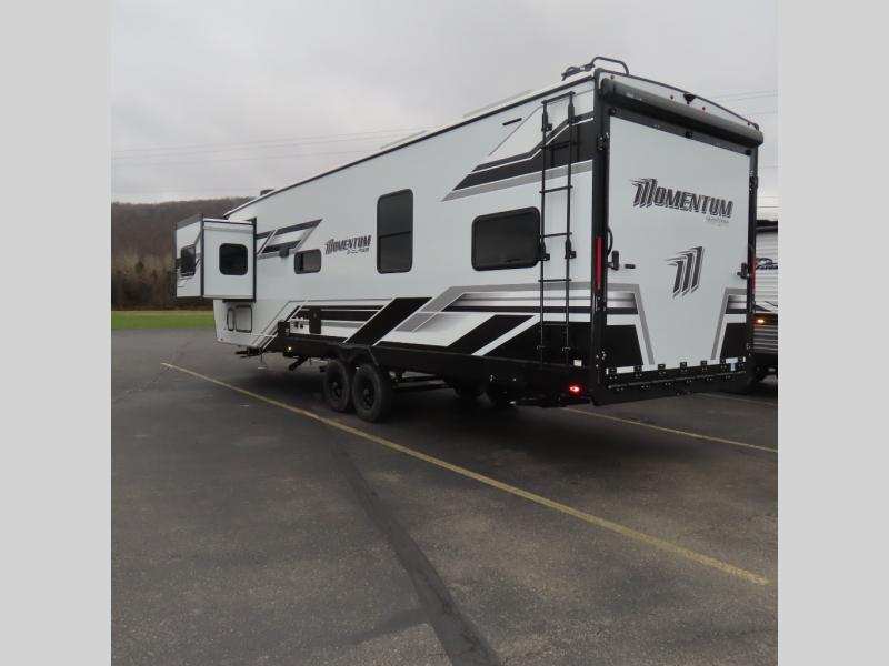 Are you looking for adventure and fun? The Momentum G-Class toy hauler by Grand Design will help you find it! You can explore during any season you choose with the Insulation Package that includes a heated and enclosed underbelly with suspended tanks, a high-capacity furnace, a moisture barrier floor enclosure, and cabinet-mounted heat ducts. Each model includes a high capacity water pump, a dovetail rear end, and 2,500-LB tie-downs anchored into the chassis. Throughout the Momentum G-Class interior, you'll enjoy many comfortable features like large panoramic windows, a shower skylight, USB chargers in the bedroom, and residential cabinetry.