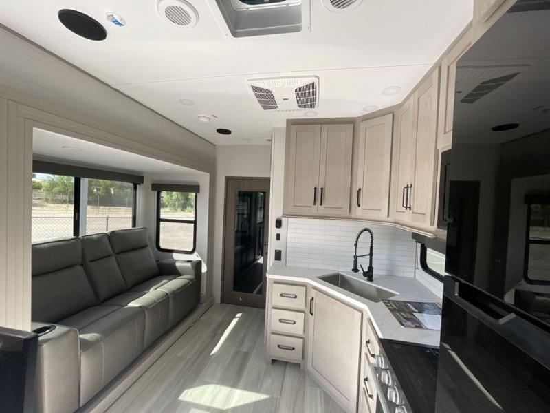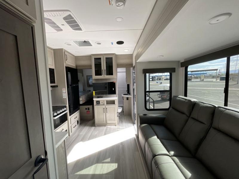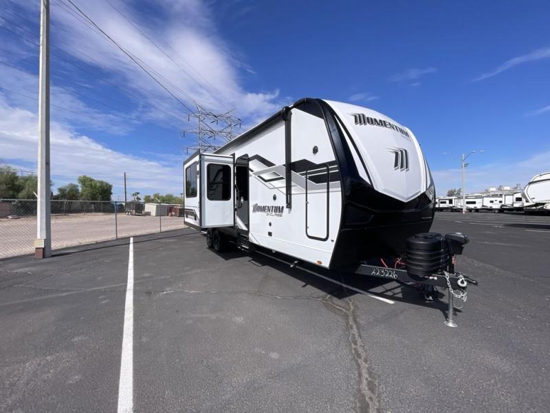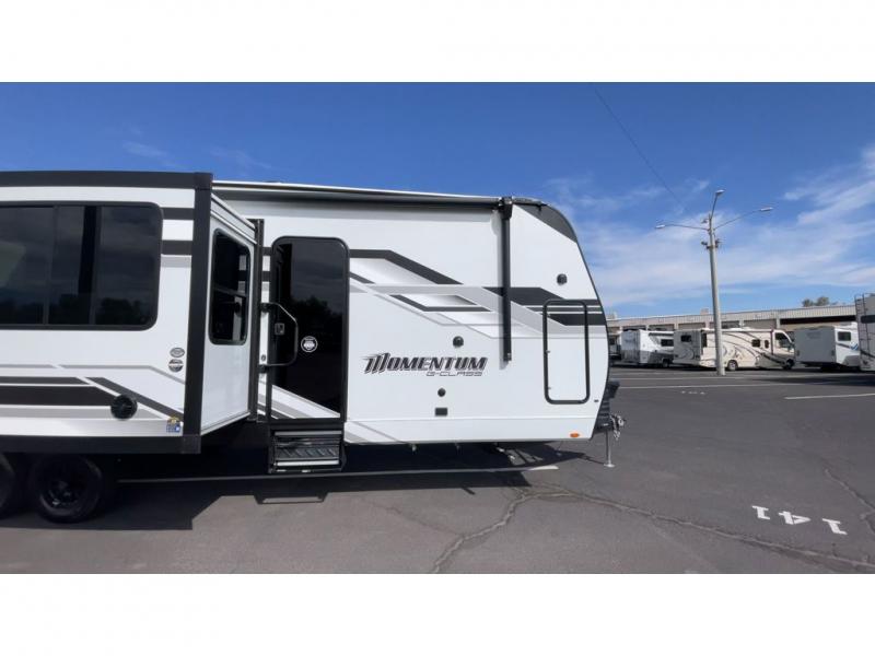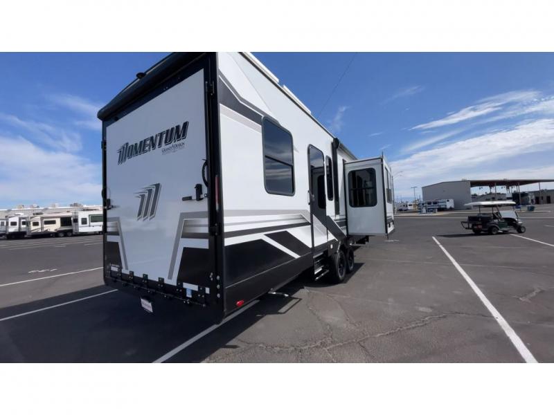 Are you looking for adventure and fun? The Momentum G-Class toy hauler by Grand Design will help you find it! You can explore during any season you choose with the Insulation Package that includes a heated and enclosed underbelly with suspended tanks, a high-capacity furnace, a moisture barrier floor enclosure, and cabinet-mounted heat ducts. Each model includes a high capacity water pump, a dovetail rear end, and 2,500-LB tie-downs anchored into the chassis. Throughout the Momentum G-Class interior, you'll enjoy many comfortable features like large panoramic windows, a shower skylight, USB chargers in the bedroom, and residential cabinetry.