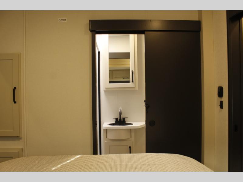 Head out to find new trails in this Momentum G-Class toy hauler travel trailer! Once you remove your dirt bikes from the 13' separate garage, fill them up using the 30-gallon fuel station and start having fun right away! The table with Happi-Jac sofas will allow those who stayed back a place to play cards, or they can head to the main living area to relax on the slide out theater seating. There is also an optional top bed above the sofa if you need additional sleeping space. The front corner master suite includes a private entrance into the dual-entry full bath, and your guests will appreciate the half bath in the garage!