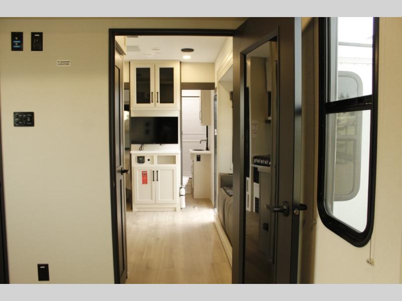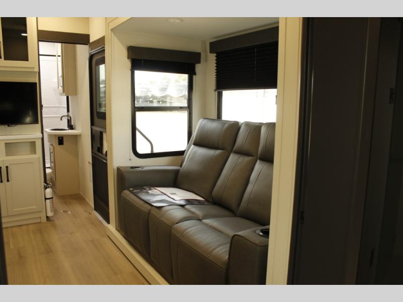 Are you looking for adventure and fun? The Momentum G-Class toy hauler by Grand Design will help you find it! You can explore during any season you choose with the Insulation Package that includes a heated and enclosed underbelly with suspended tanks, a high-capacity furnace, a moisture barrier floor enclosure, and cabinet-mounted heat ducts. Each model includes a high capacity water pump, a dovetail rear end, and 2,500-LB tie-downs anchored into the chassis. Throughout the Momentum G-Class interior, you'll enjoy many comfortable features like large panoramic windows, a shower skylight, USB chargers in the bedroom, and residential cabinetry.