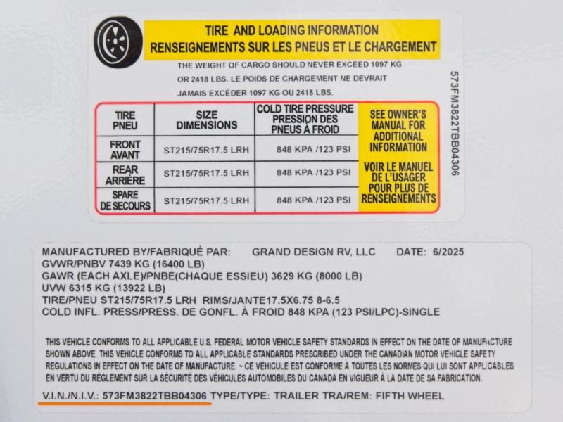 New 2026 Grand Design Momentum G-Class 320G Toy Hauler Fifth Wheel