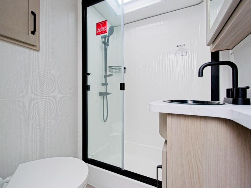 Inside, enjoy panoramic windows, a shower skylight, USB charging ports, and residential-style cabinetry—all designed to enhance your comfort and convenience.