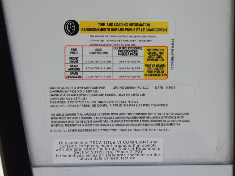 New 2026 Grand Design Momentum G-Class 320G Toy Hauler Fifth Wheel