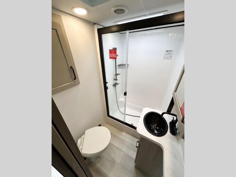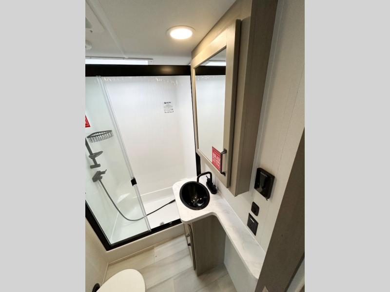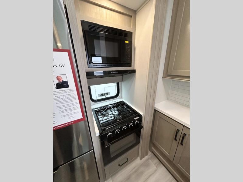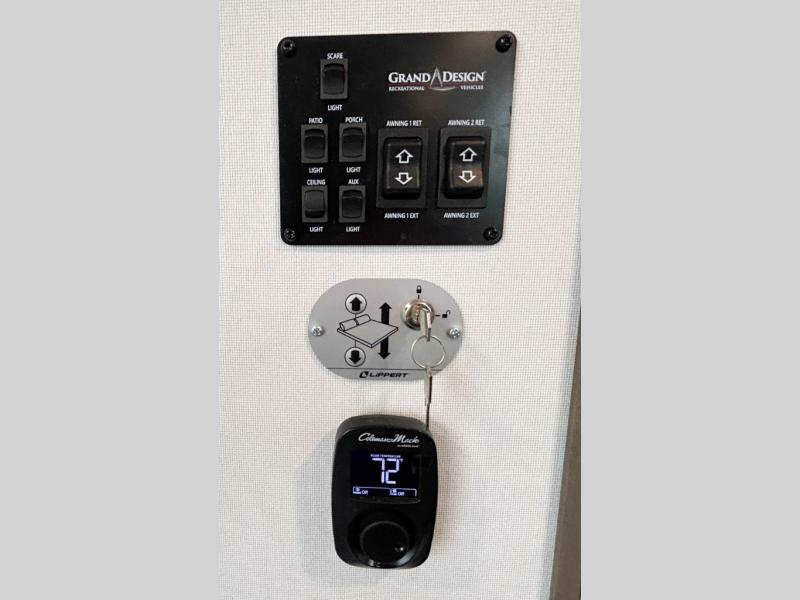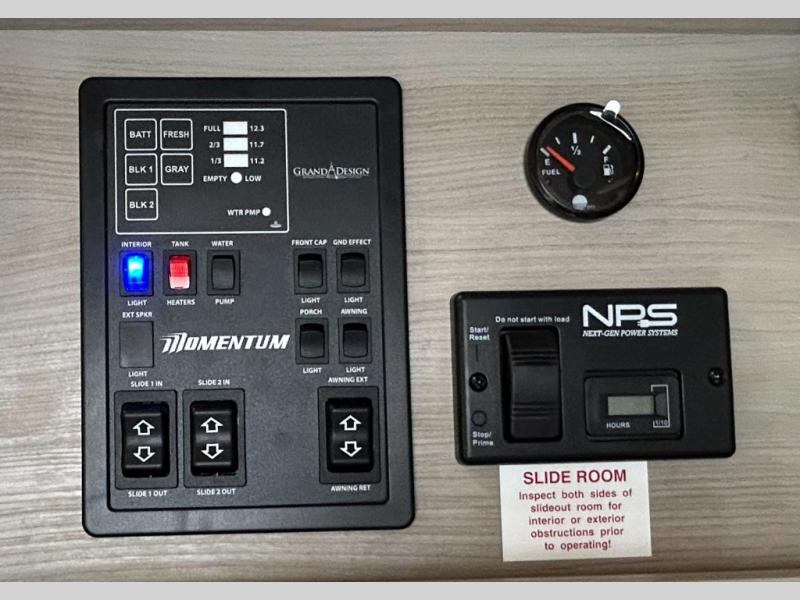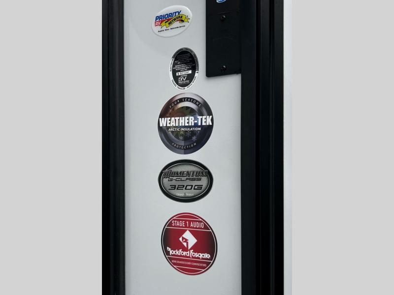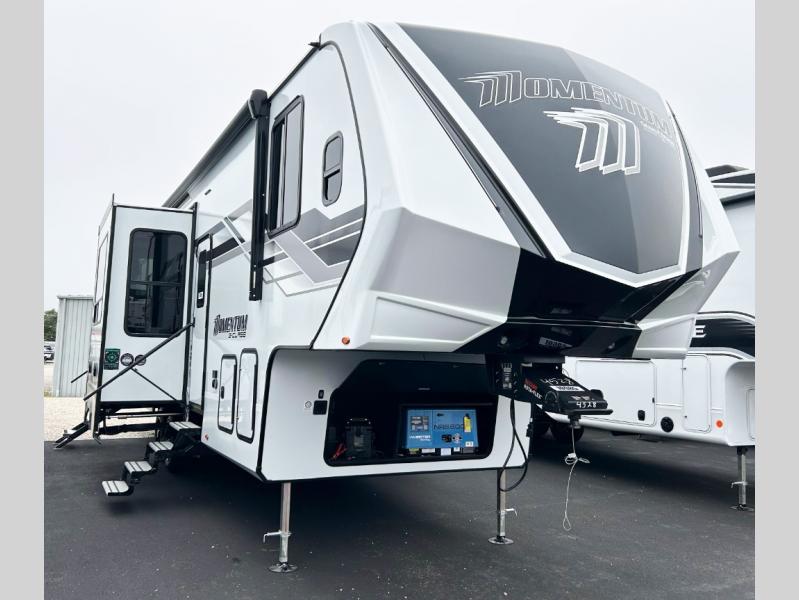 Are you looking for adventure and fun? The Momentum G-Class toy hauler by Grand Design will help you find it! You can explore during any season you choose with the Insulation Package that includes a heated and enclosed underbelly with suspended tanks, a high-capacity furnace, a moisture barrier floor enclosure, and cabinet-mounted heat ducts. Each model includes a fuel station with an interior and exterior gauge, a dovetail rear rend, and 2,500-LB tie-downs anchored into the chassis. Throughout the Momentum G-Class interior, you'll enjoy many comfortable features like large panoramic windows, a shower skylight, USB chargers in the bedroom, and residential cabinetry.