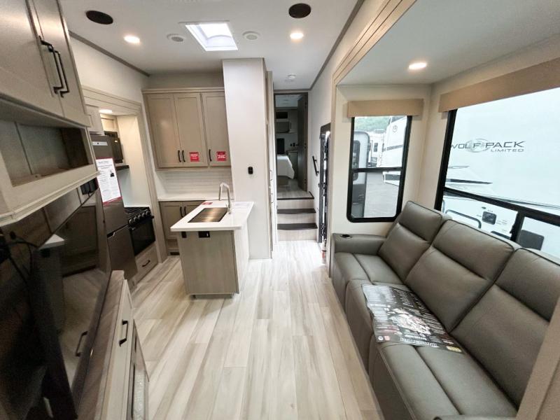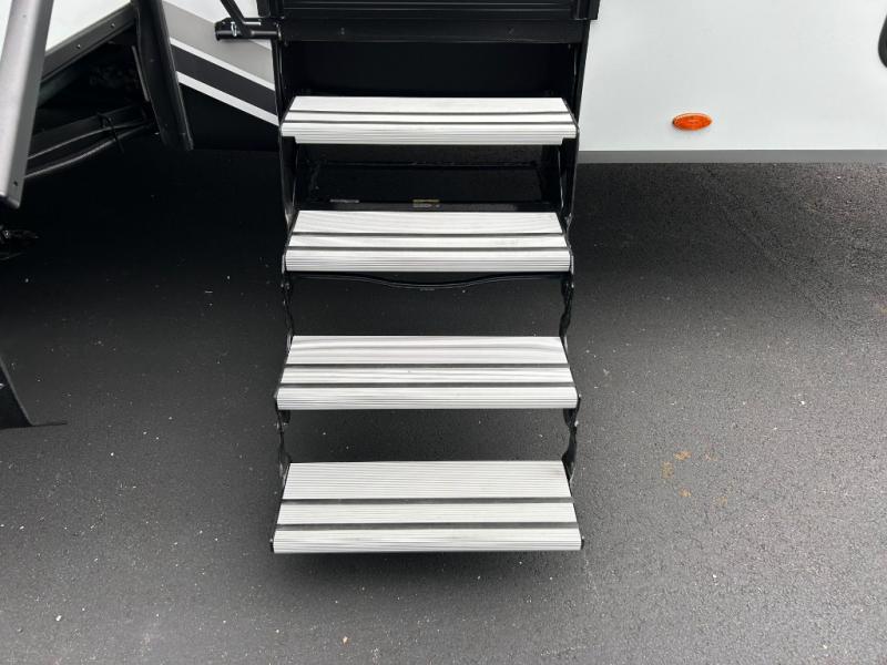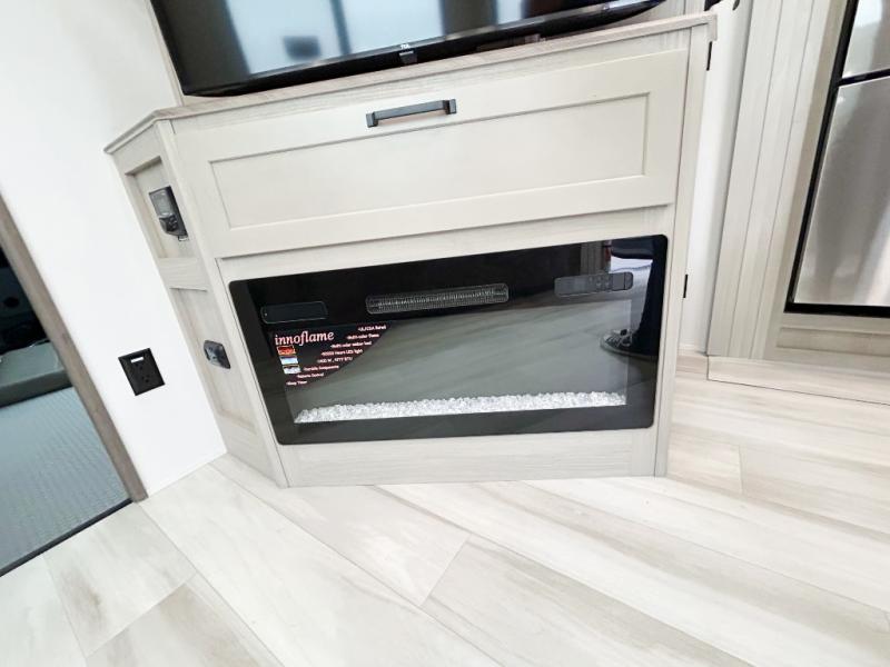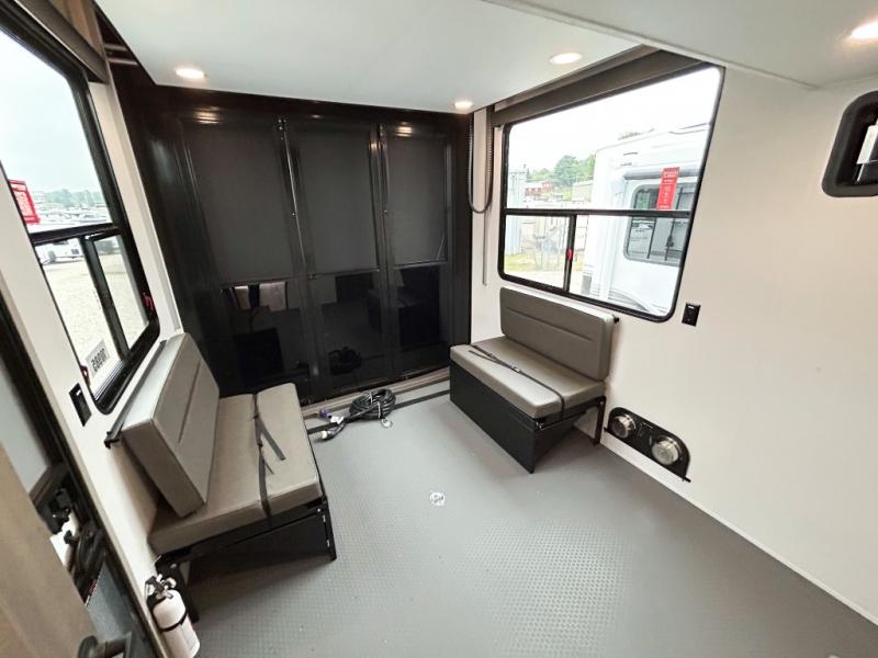 Are you looking forward to arriving at your destination, unloading your toys from an 11' separate garage, and heading out to the dunes? You can return to this Momentum G-Class toy hauler afterwards to find the convenience of having a full and half bath, two entry doors, and a loft bed. The rear ramp door can even be converted into a patio, plus there are exterior speakers to keep the party going! You will also appreciate the separate living area with a fireplace, theater seating slide, and full kitchen amenities. The front bedroom offers an escape to rest and relax for the next ride. Take a look outside and inside because you will be sold!