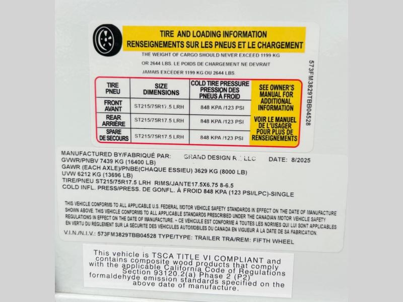 New 2026 Grand Design Momentum G-Class 320G Toy Hauler Fifth Wheel