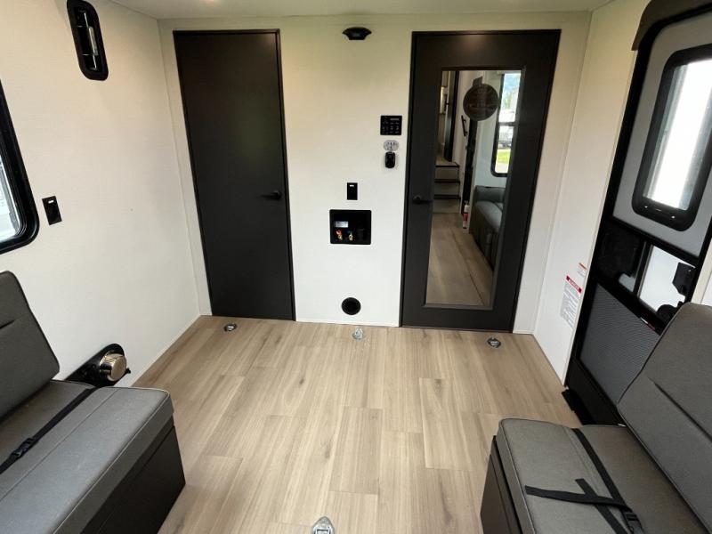 Are you looking for adventure and fun? The Momentum G-Class toy hauler by Grand Design will help you find it! You can explore during any season you choose with the Insulation Package that includes a heated and enclosed underbelly with suspended tanks, a high-capacity furnace, a moisture barrier floor enclosure, and cabinet-mounted heat ducts. Each model includes a fuel station with an interior and exterior gauge, a dovetail rear rend, and 2,500-LB tie-downs anchored into the chassis. Throughout the Momentum G-Class interior, you'll enjoy many comfortable features like large panoramic windows, a shower skylight, USB chargers in the bedroom, and residential cabinetry.