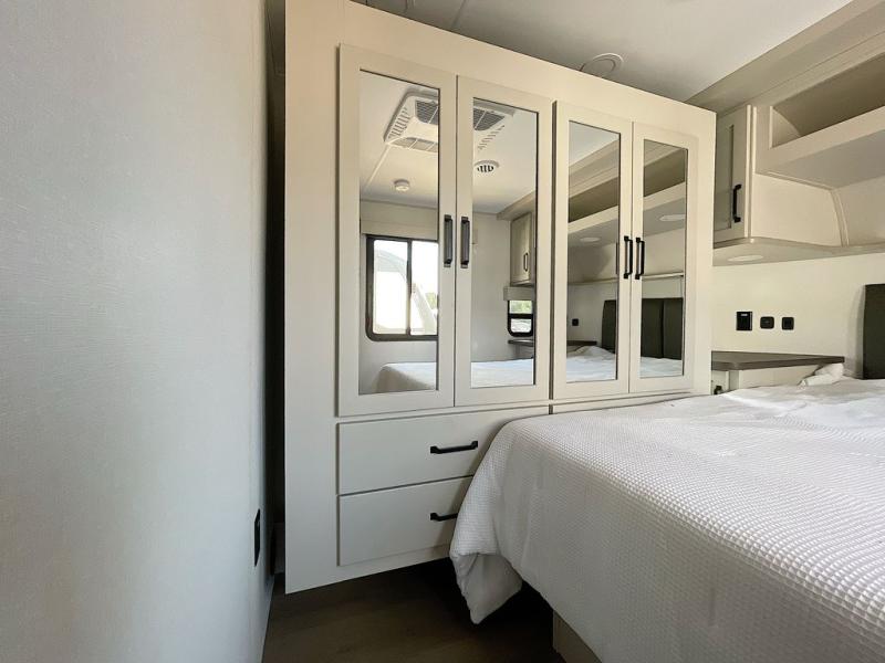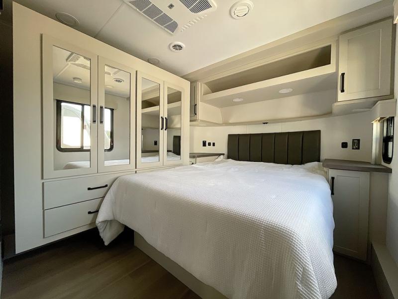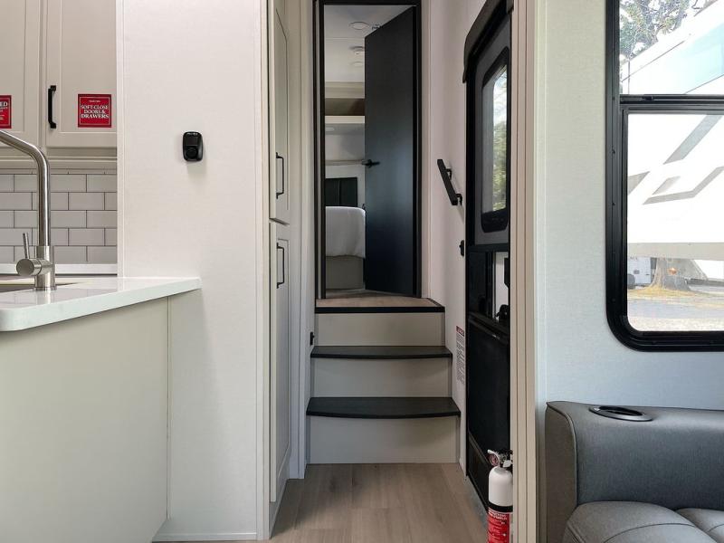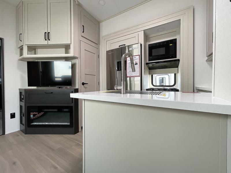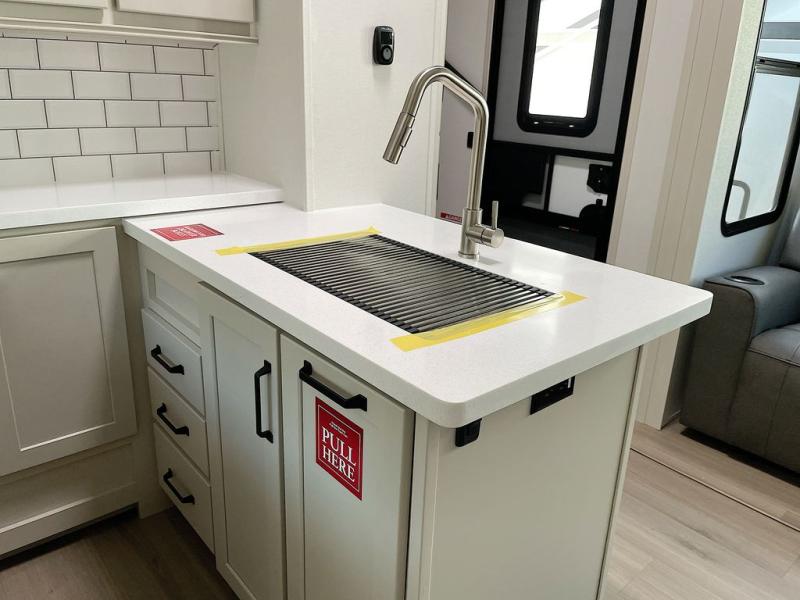 Are you looking for adventure and fun? The Momentum G-Class toy hauler by Grand Design will help you find it! You can explore during any season you choose with the Insulation Package that includes a heated and enclosed underbelly with suspended tanks, a high-capacity furnace, a moisture barrier floor enclosure, and cabinet-mounted heat ducts. Each model includes a fuel station with an interior and exterior gauge, a dovetail rear rend, and 2,500-LB tie-downs anchored into the chassis. Throughout the Momentum G-Class interior, you'll enjoy many comfortable features like large panoramic windows, a shower skylight, USB chargers in the bedroom, and residential cabinetry.
