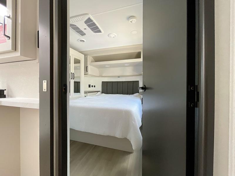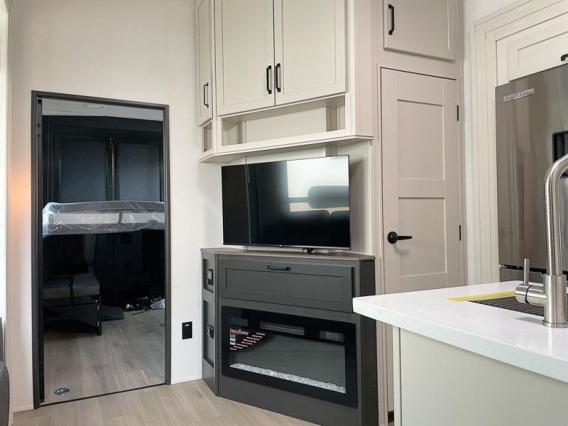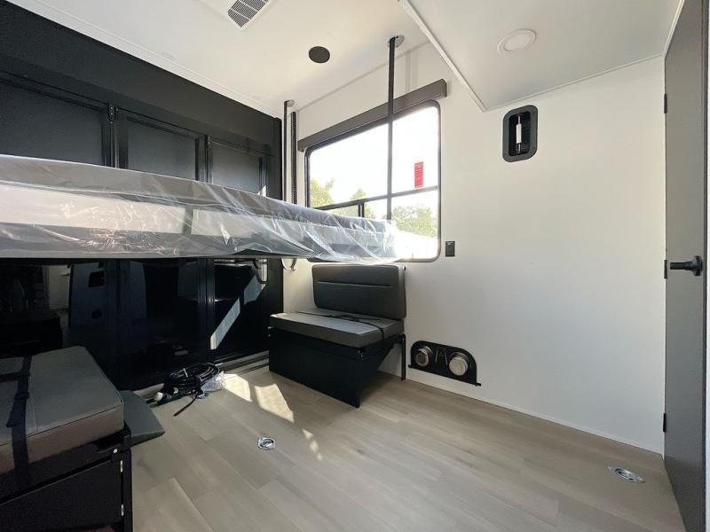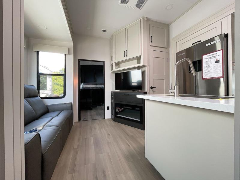 Are you looking forward to arriving at your destination, unloading your toys from an 11' separate garage, and heading out to the dunes? You can return to this Momentum G-Class toy hauler afterwards to find the convenience of having a full and half bath, two entry doors, and a loft bed. The rear ramp door can even be converted into a patio, plus there are exterior speakers to keep the party going! You will also appreciate the separate living area with a fireplace, theater seating slide, and full kitchen amenities. The front bedroom offers an escape to rest and relax for the next ride. Take a look outside and inside because you will be sold!