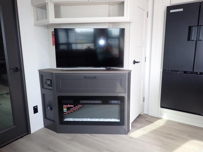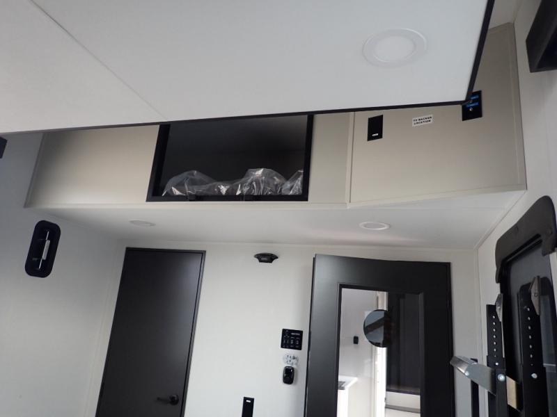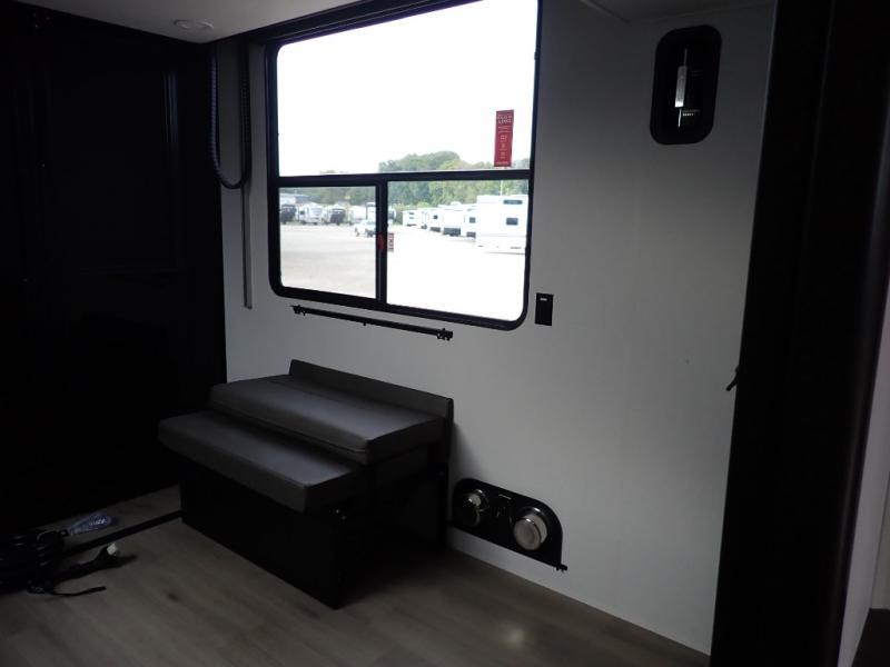Are you looking forward to arriving at your destination, unloading your toys from an 11' separate garage, and heading out to the dunes? You can return to this Momentum G-Class toy hauler afterwards to find the convenience of having a full and half bath, two entry doors, and a loft bed. The rear ramp door can even be converted into a patio, plus there are exterior speakers to keep the party going! You will also appreciate the separate living area with a fireplace, theater seating slide, and full kitchen amenities. The front bedroom offers an escape to rest and relax for the next ride. Take a look outside and inside because you will be sold!