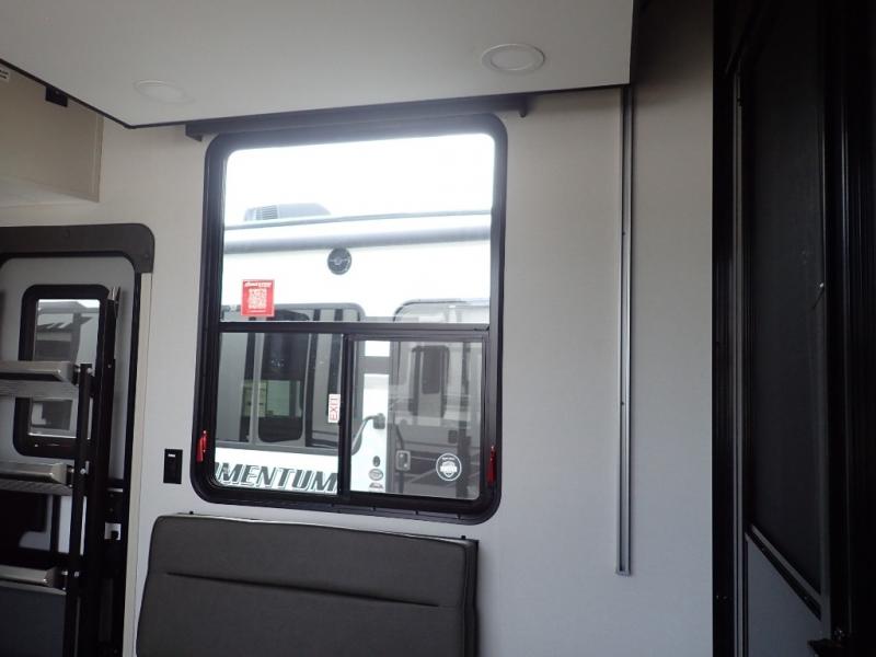 Are you looking for adventure and fun? The Momentum G-Class toy hauler by Grand Design will help you find it! You can explore during any season you choose with the Insulation Package that includes a heated and enclosed underbelly with suspended tanks, a high-capacity furnace, a moisture barrier floor enclosure, and cabinet-mounted heat ducts. Each model includes a fuel station with an interior and exterior gauge, a dovetail rear rend, and 2,500-LB tie-downs anchored into the chassis. Throughout the Momentum G-Class interior, you'll enjoy many comfortable features like large panoramic windows, a shower skylight, USB chargers in the bedroom, and residential cabinetry.