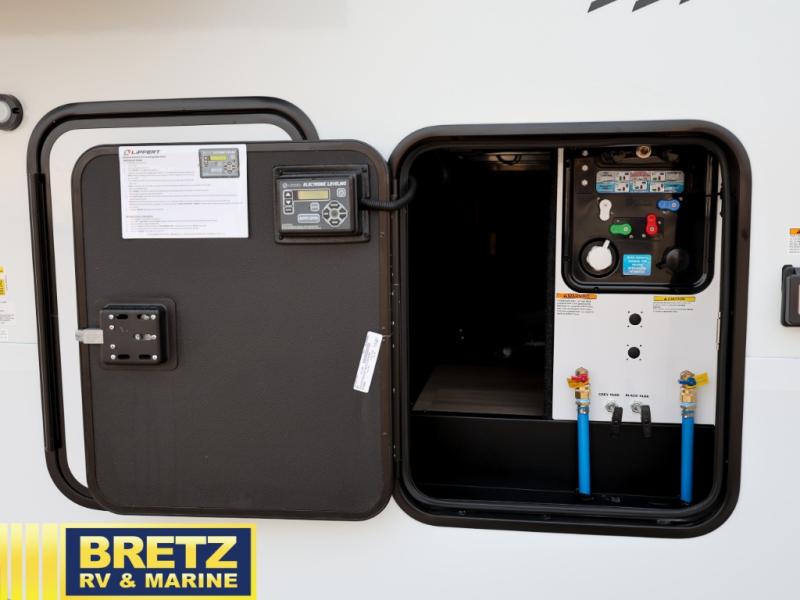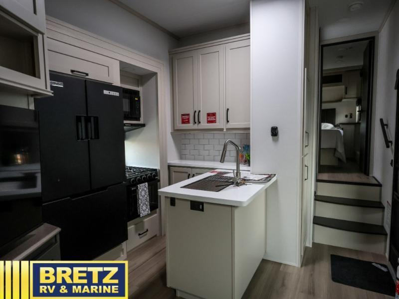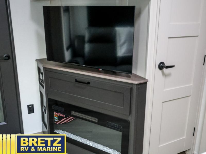 Are you looking forward to arriving at your destination, unloading your toys from an 11' separate garage, and heading out to the dunes? You can return to this Momentum G-Class toy hauler afterwards to find the convenience of having a full and half bath, two entry doors, and a loft bed. The rear ramp door can even be converted into a patio, plus there are exterior speakers to keep the party going! You will also appreciate the separate living area with a fireplace, theater seating slide, and full kitchen amenities. The front bedroom offers an escape to rest and relax for the next ride. Take a look outside and inside because you will be sold!