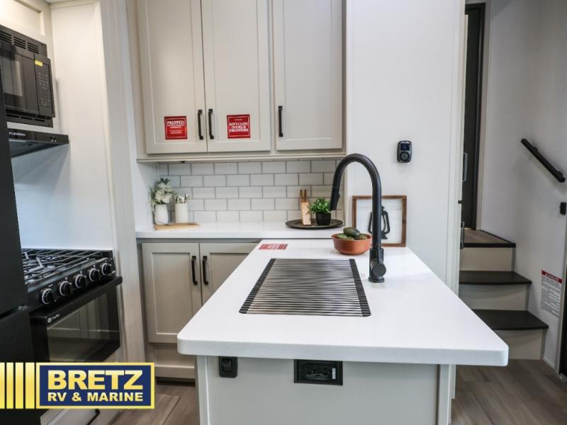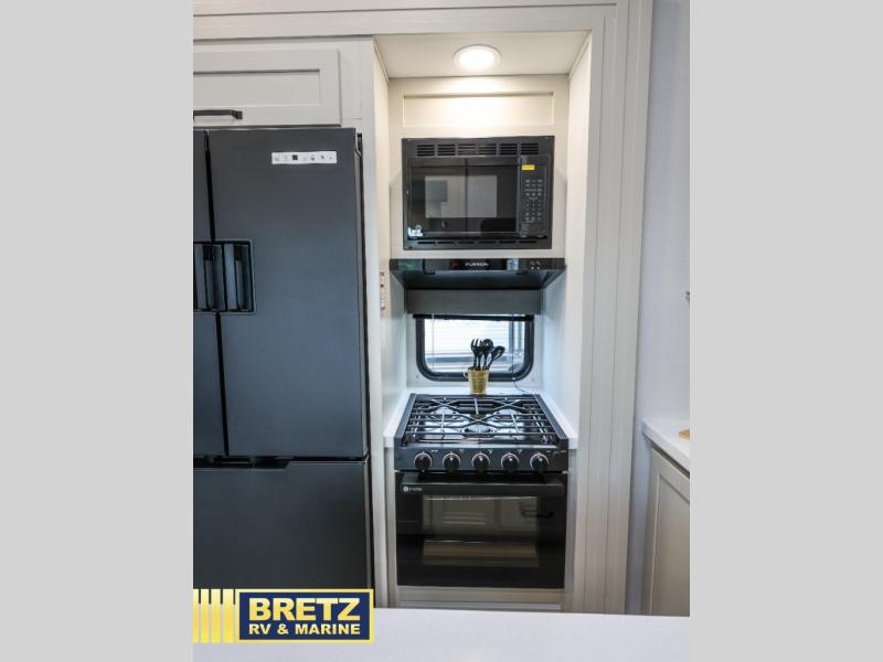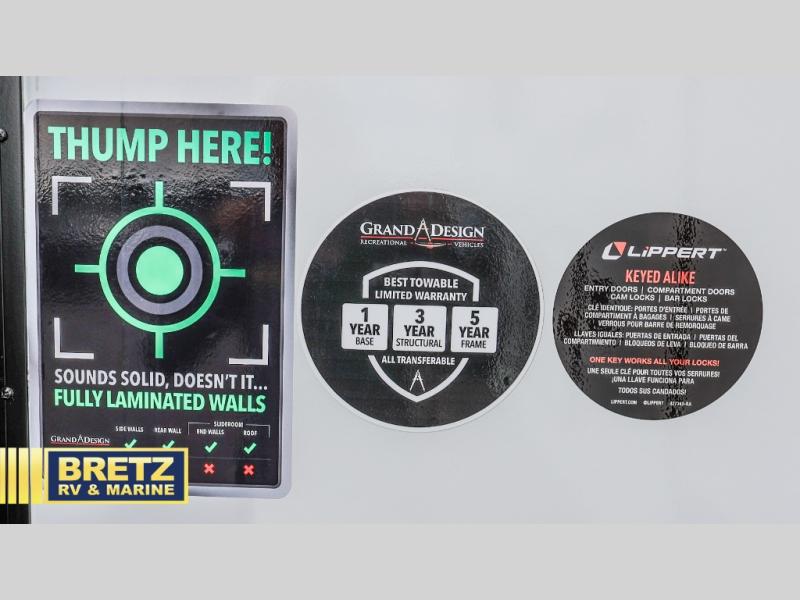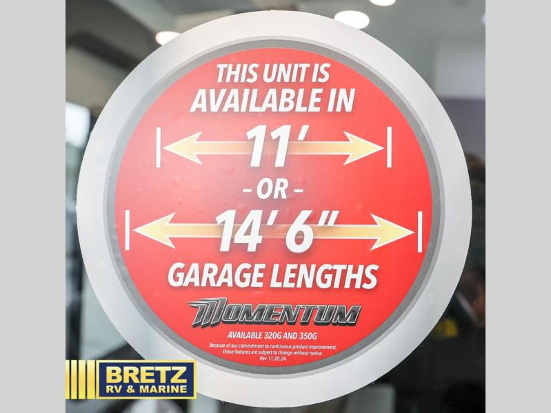 Are you looking for adventure and fun? The Momentum G-Class toy hauler by Grand Design will help you find it! You can explore during any season you choose with the Insulation Package that includes a heated and enclosed underbelly with suspended tanks, a high-capacity furnace, a moisture barrier floor enclosure, and cabinet-mounted heat ducts. Each model includes a fuel station with an interior and exterior gauge, a dovetail rear rend, and 2,500-LB tie-downs anchored into the chassis. Throughout the Momentum G-Class interior, you'll enjoy many comfortable features like large panoramic windows, a shower skylight, USB chargers in the bedroom, and residential cabinetry.