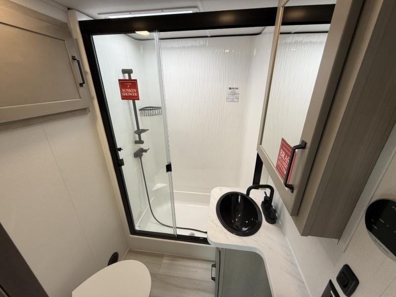Are you looking for adventure and fun? The Momentum G-Class toy hauler by Grand Design will help you find it! You can explore during any season you choose with the Insulation Package that includes a heated and enclosed underbelly with suspended tanks, a high-capacity furnace, a moisture barrier floor enclosure, and cabinet-mounted heat ducts. Each model includes a fuel station with an interior and exterior gauge, a dovetail rear rend, and 2,500-LB tie-downs anchored into the chassis. Throughout the Momentum G-Class interior, you'll enjoy many comfortable features like large panoramic windows, a shower skylight, USB chargers in the bedroom, and residential cabinetry.