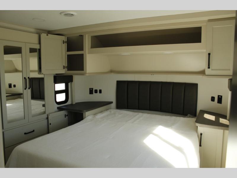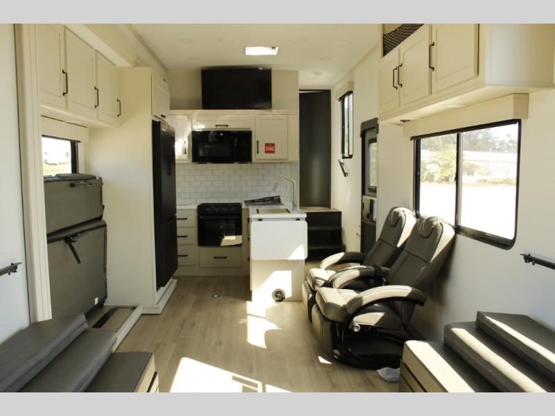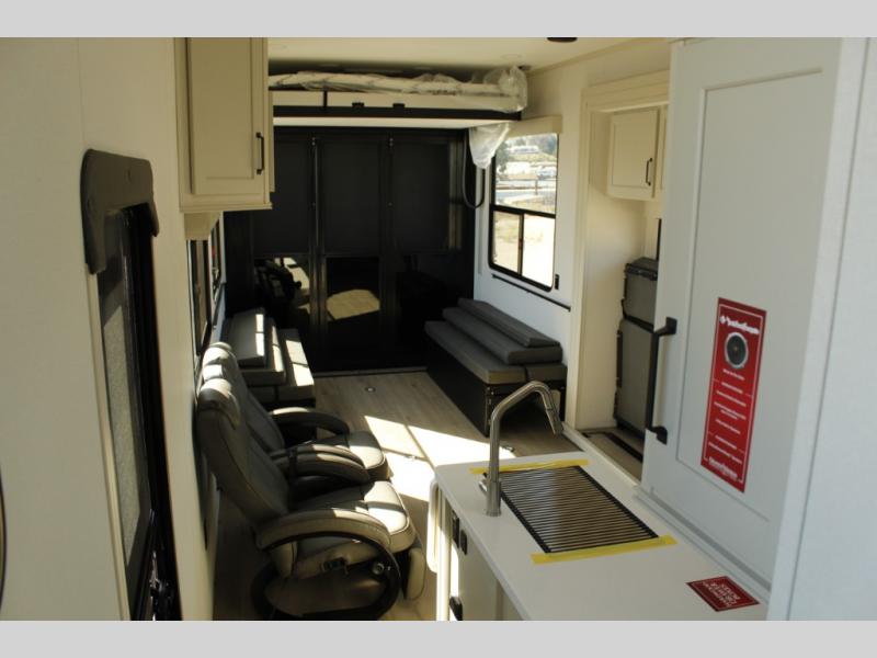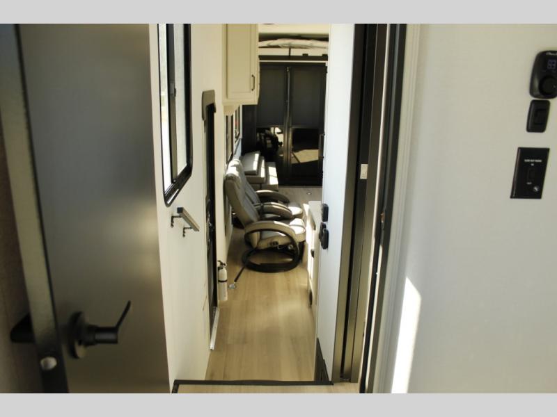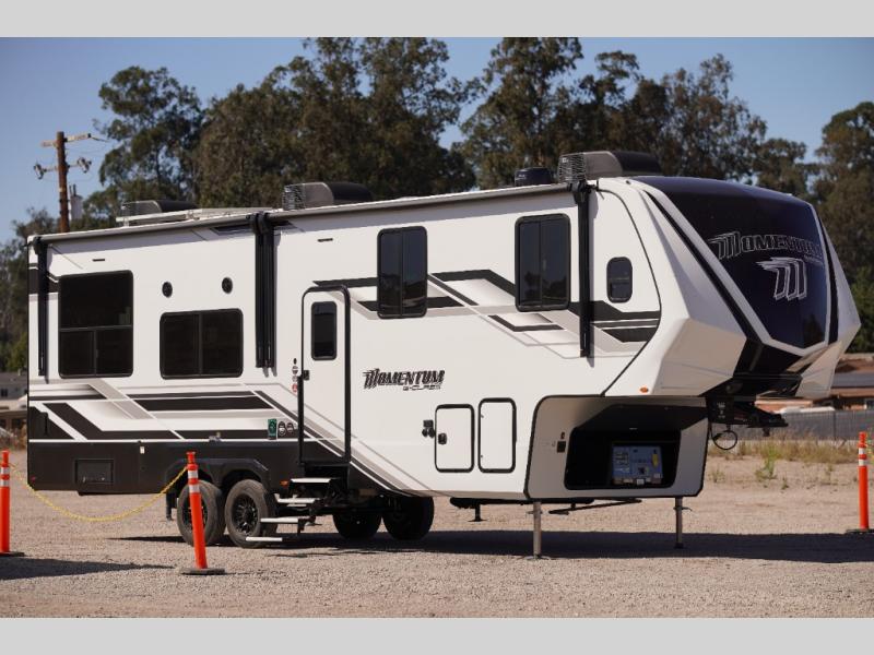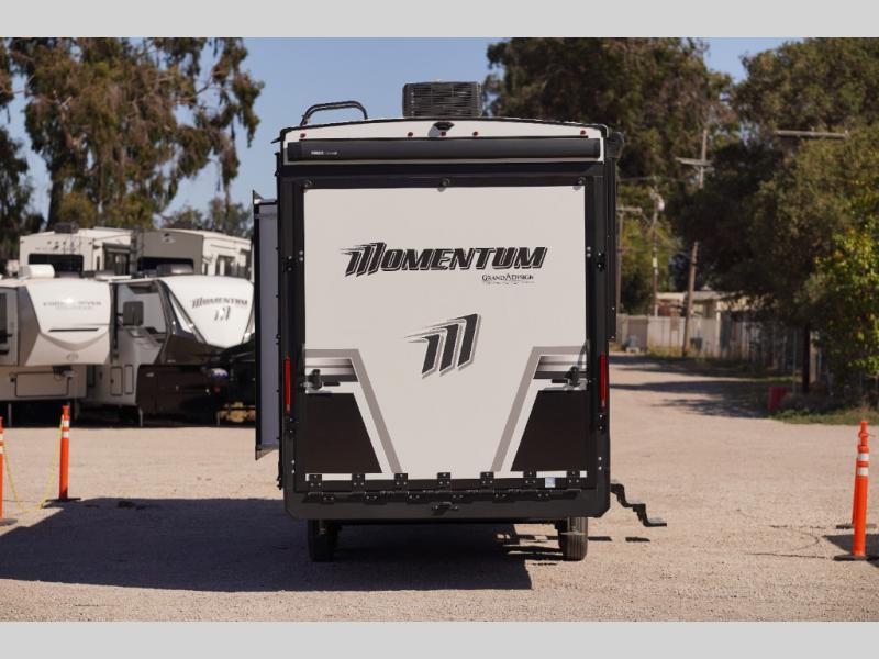Are you looking for adventure and fun? The Momentum G-Class toy hauler by Grand Design will help you find it! You can explore during any season you choose with the Insulation Package that includes a heated and enclosed underbelly with suspended tanks, a high-capacity furnace, a moisture barrier floor enclosure, and cabinet-mounted heat ducts. Each model includes a fuel station with an interior and exterior gauge, a dovetail rear rend, and 2,500-LB tie-downs anchored into the chassis. Throughout the Momentum G-Class interior, you'll enjoy many comfortable features like large panoramic windows, a shower skylight, USB chargers in the bedroom, and residential cabinetry.