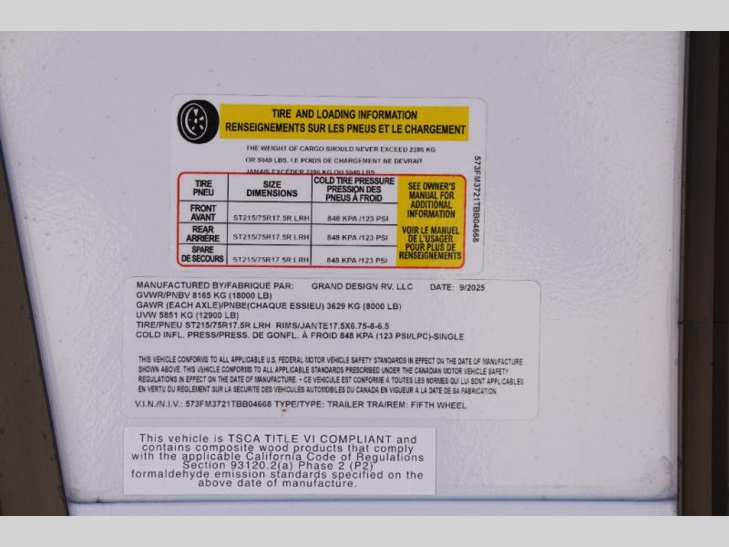 New 2026 Grand Design Momentum G-Class 325G Toy Hauler Fifth Wheel