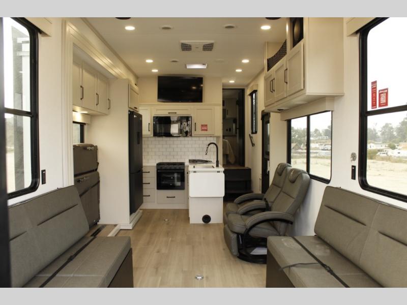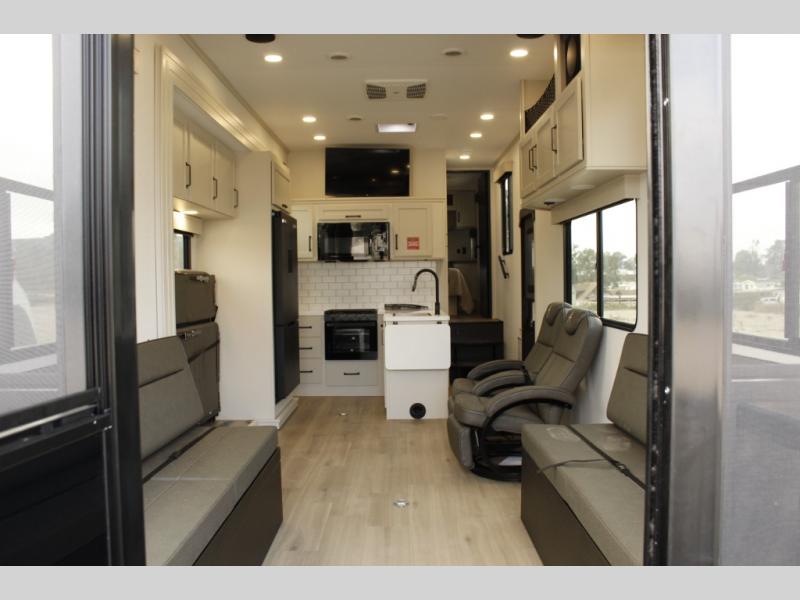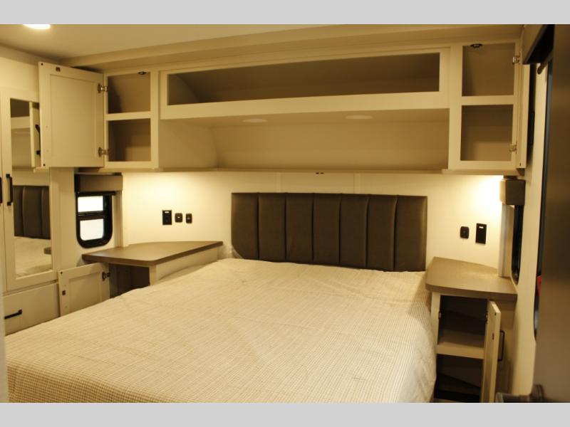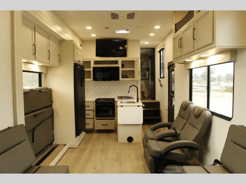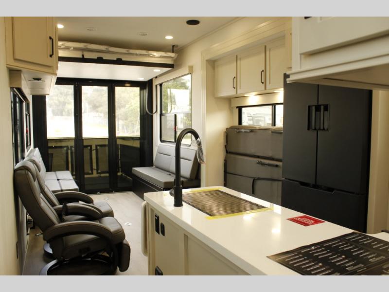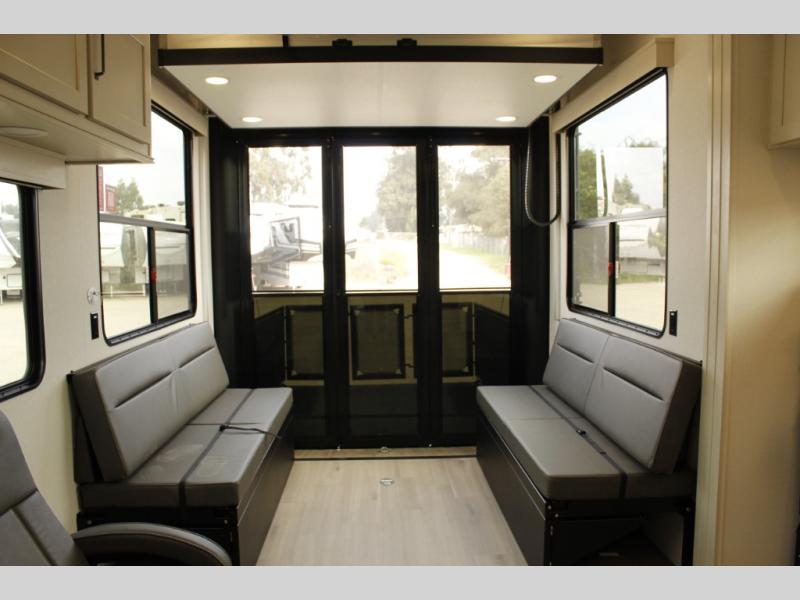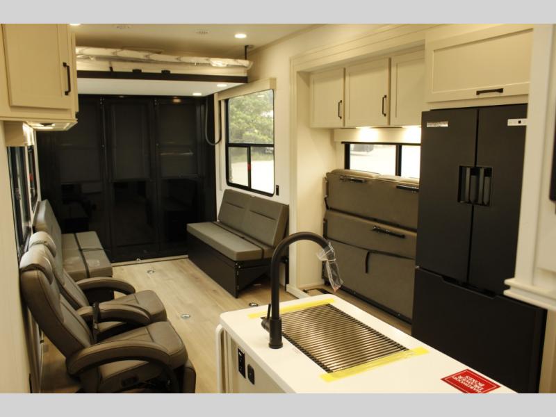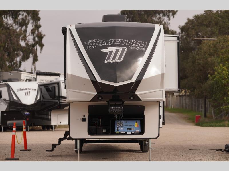 Are you looking for adventure and fun? The Momentum G-Class toy hauler by Grand Design will help you find it! You can explore during any season you choose with the Insulation Package that includes a heated and enclosed underbelly with suspended tanks, a high-capacity furnace, a moisture barrier floor enclosure, and cabinet-mounted heat ducts. Each model includes a fuel station with an interior and exterior gauge, a dovetail rear rend, and 2,500-LB tie-downs anchored into the chassis. Throughout the Momentum G-Class interior, you'll enjoy many comfortable features like large panoramic windows, a shower skylight, USB chargers in the bedroom, and residential cabinetry.