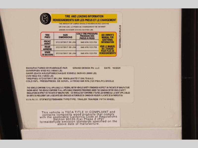 New 2026 Grand Design Momentum G-Class 325G Toy Hauler Fifth Wheel