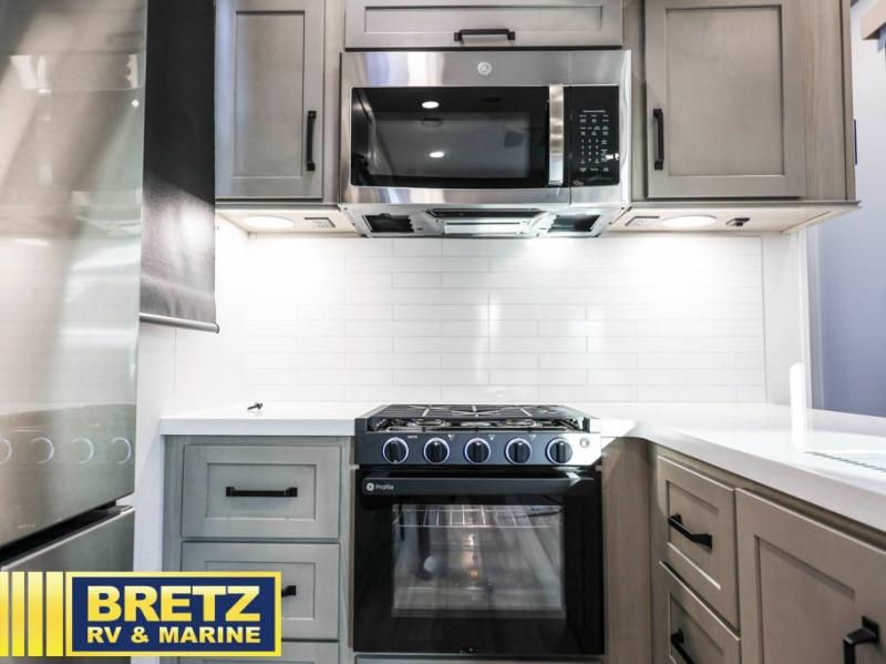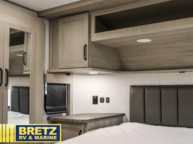 Are you looking for adventure and fun? The Momentum G-Class toy hauler by Grand Design will help you find it! You can explore during any season you choose with the Insulation Package that includes a heated and enclosed underbelly with suspended tanks, a high-capacity furnace, a moisture barrier floor enclosure, and cabinet-mounted heat ducts. Each model includes a high capacity water pump, a dovetail rear end, and 2,500-LB tie-downs anchored into the chassis. Throughout the Momentum G-Class interior, you'll enjoy many comfortable features like large panoramic windows, a shower skylight, USB chargers in the bedroom, and residential cabinetry.