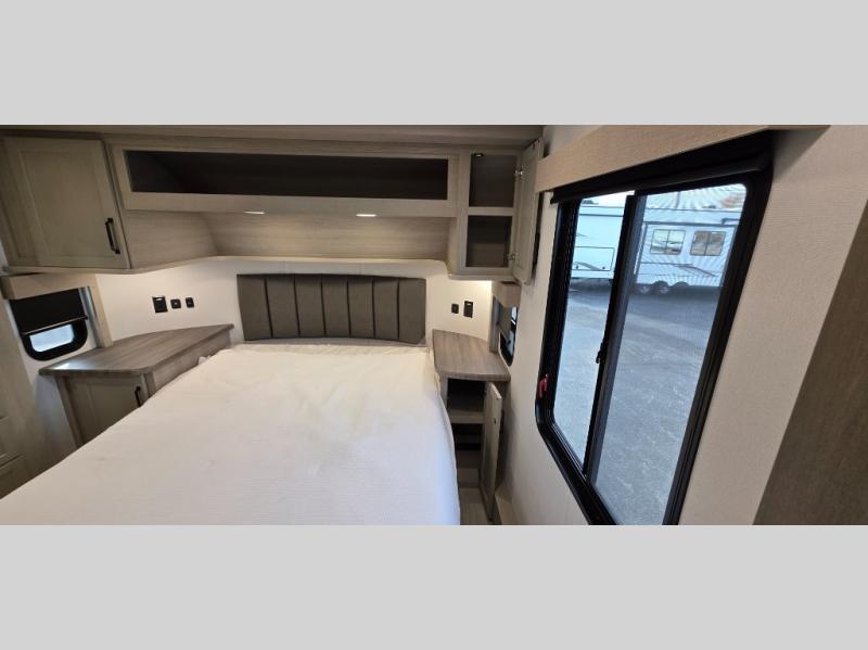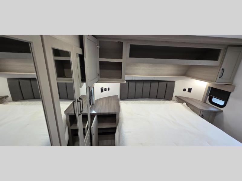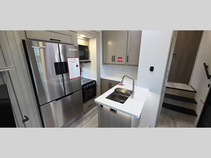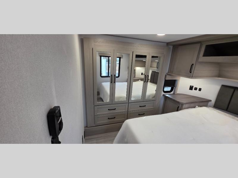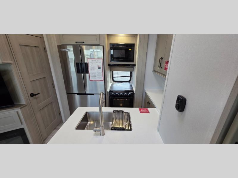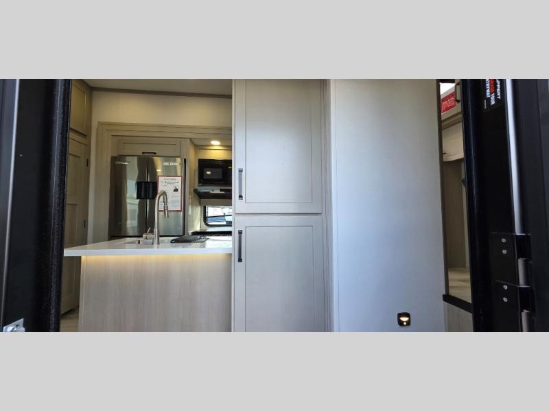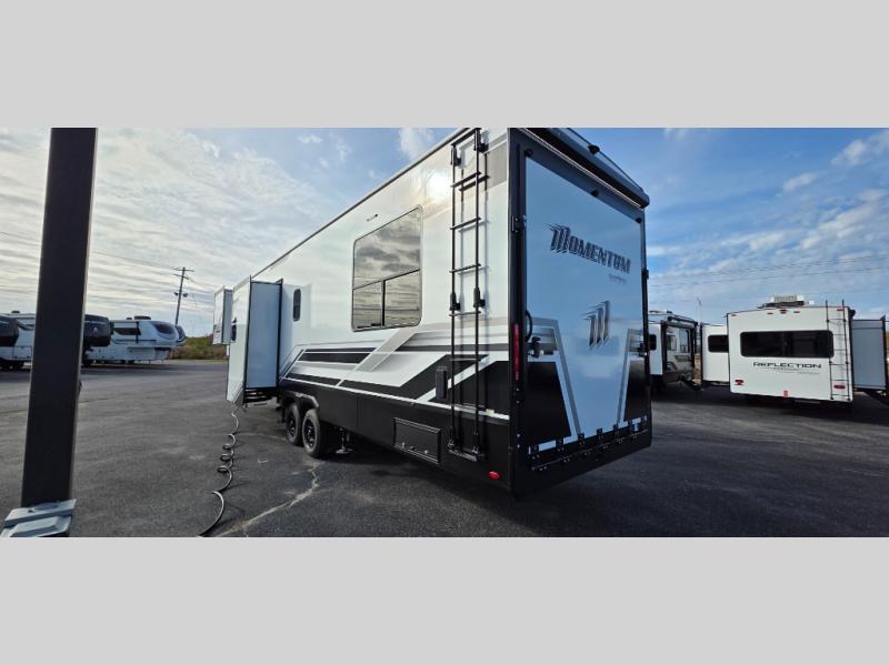 Are you looking for adventure and fun? The Momentum G-Class toy hauler by Grand Design will help you find it! You can explore during any season you choose with the Insulation Package that includes a heated and enclosed underbelly with suspended tanks, a high-capacity furnace, a moisture barrier floor enclosure, and cabinet-mounted heat ducts. Each model includes a fuel station with an interior and exterior gauge, a dovetail rear rend, and 2,500-LB tie-downs anchored into the chassis. Throughout the Momentum G-Class interior, you'll enjoy many comfortable features like large panoramic windows, a shower skylight, USB chargers in the bedroom, and residential cabinetry.