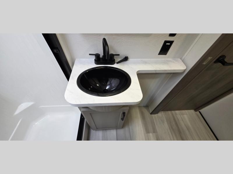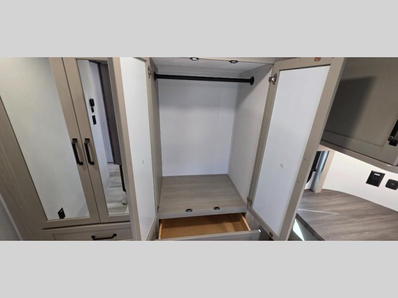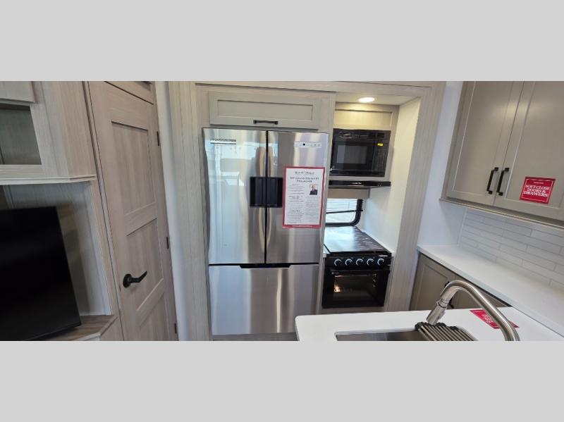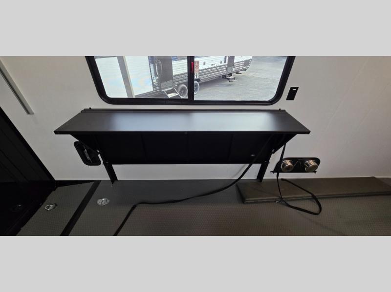 Just imagine the fun you will have with this Momentum G-Class toy hauler set up at any off-road park. With the 14' 6" separate garage that includes a half bath, a second exterior entry door, and a loft, you will have your own area to do what you like. The rear ramp door can even be converted into a patio if you need more outdoor living space. The main living area offers a fireplace, theater seating, and kitchen appliances to make delicious home cooked meals. You will also be able to stay clean and ready for the next ride with the walk-in shower in the full bathroom, and the front master bedroom has plenty of storage for clothing with the wardrobe slide and overhead cabinets.