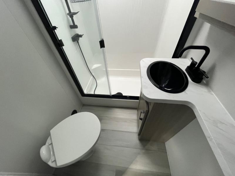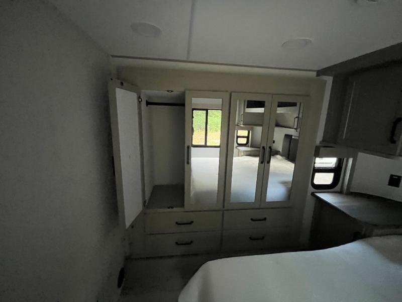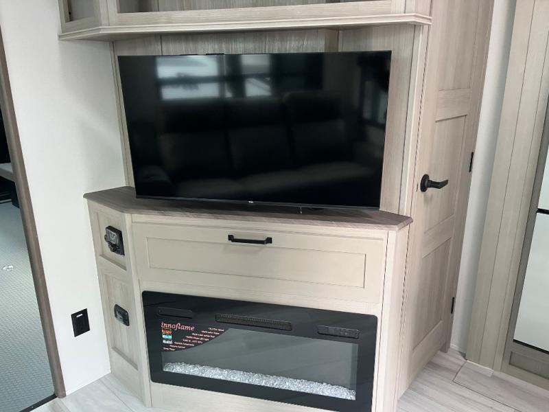 Just imagine the fun you will have with this Momentum G-Class toy hauler set up at any off-road park. With the 14' 6" separate garage that includes a half bath, a second exterior entry door, and a loft, you will have your own area to do what you like. The rear ramp door can even be converted into a patio if you need more outdoor living space. The main living area offers a fireplace, theater seating, and kitchen appliances to make delicious home cooked meals. You will also be able to stay clean and ready for the next ride with the walk-in shower in the full bathroom, and the front master bedroom has plenty of storage for clothing with the wardrobe slide and overhead cabinets.