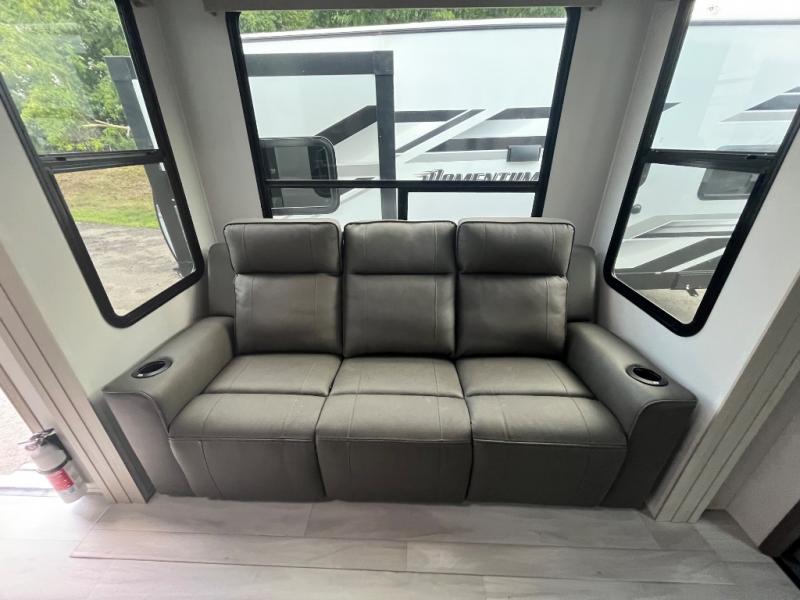 Are you looking for adventure and fun? The Momentum G-Class toy hauler by Grand Design will help you find it! You can explore during any season you choose with the Insulation Package that includes a heated and enclosed underbelly with suspended tanks, a high-capacity furnace, a moisture barrier floor enclosure, and cabinet-mounted heat ducts. Each model includes a fuel station with an interior and exterior gauge, a dovetail rear rend, and 2,500-LB tie-downs anchored into the chassis. Throughout the Momentum G-Class interior, you'll enjoy many comfortable features like large panoramic windows, a shower skylight, USB chargers in the bedroom, and residential cabinetry.