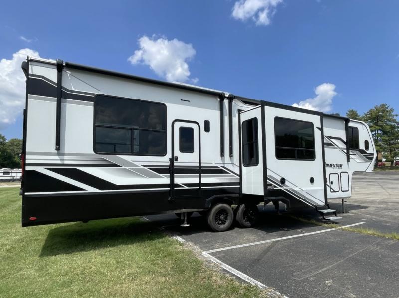 Get ready to take your next adventure to the next level with the Grand Design Momentum G Class 350G Toy Hauler. Designed for thrill seekers and outdoor lovers, this luxury fifth wheel offers unbeatable space, comfort, and versatility.