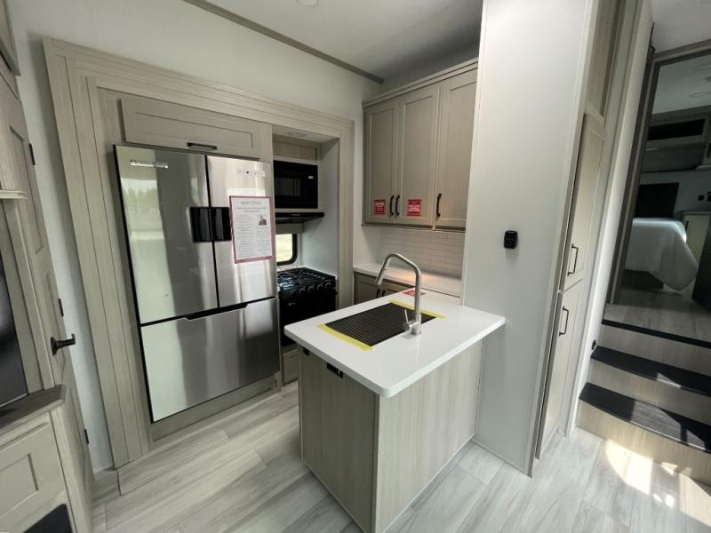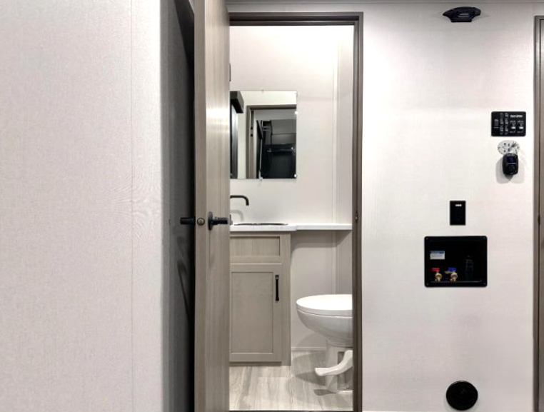 Whether you are hitting the dunes or the mountains, the Momentum 350G is built to bring your toys and your comfort with you. The massive garage offers room for ATVs, dirt bikes, and gear, plus a half bath, loft bed, and its own exterior entry. Turn the rear ramp into a patio deck for extra outdoor living space wherever you camp.
