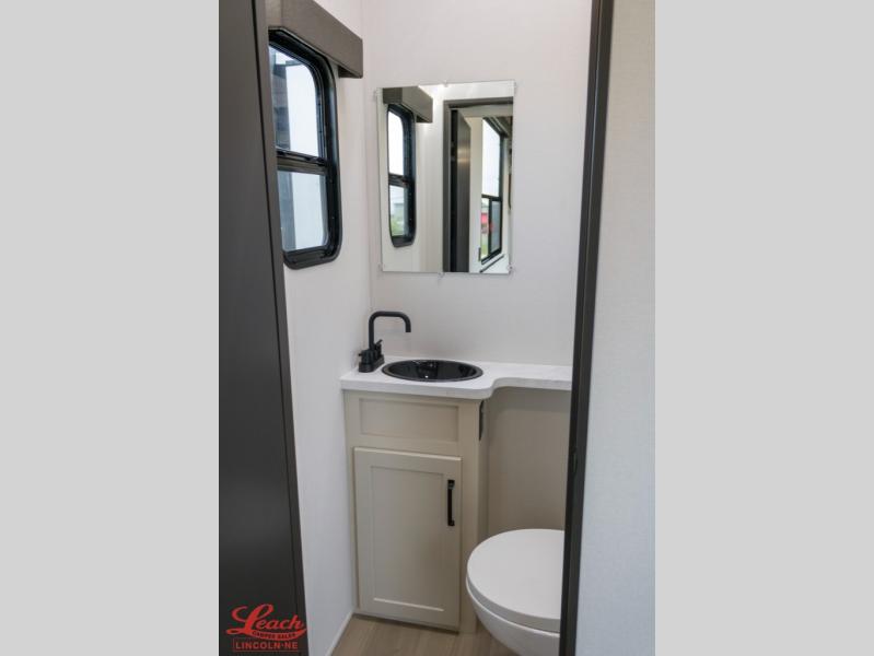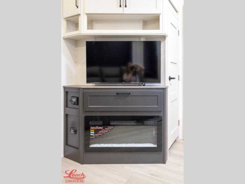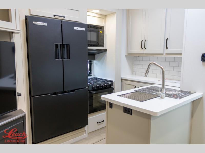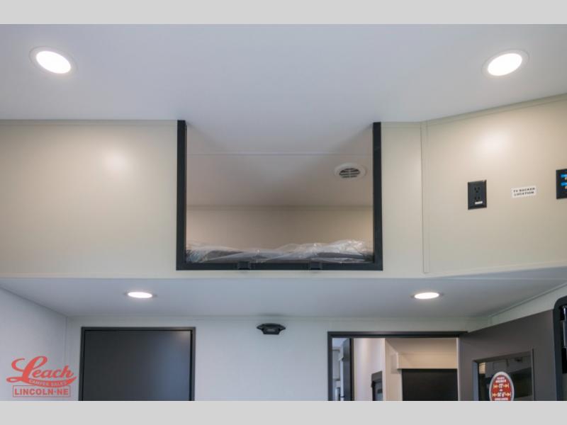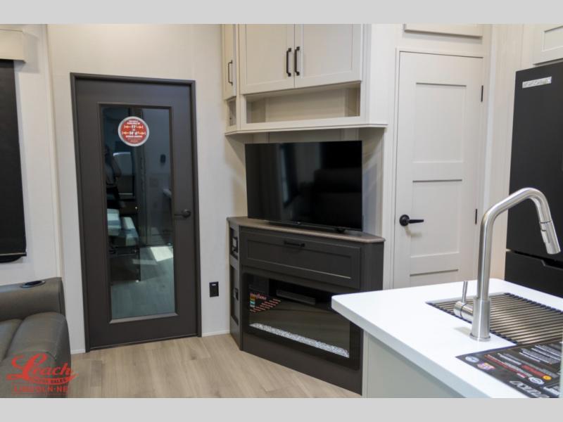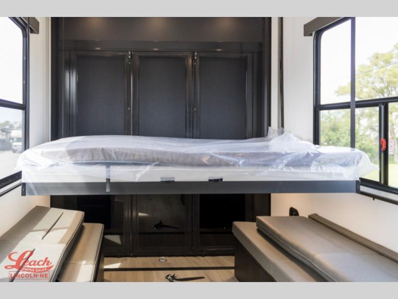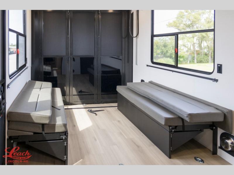 Just imagine the fun you will have with this Momentum G-Class toy hauler set up at any off-road park. With the 14' 6" separate garage that includes a half bath, a second exterior entry door, and a loft, you will have your own area to do what you like. The rear ramp door can even be converted into a patio if you need more outdoor living space. The main living area offers a fireplace, theater seating, and kitchen appliances to make delicious home cooked meals. You will also be able to stay clean and ready for the next ride with the walk-in shower in the full bathroom, and the front master bedroom has plenty of storage for clothing with the wardrobe slide and overhead cabinets.