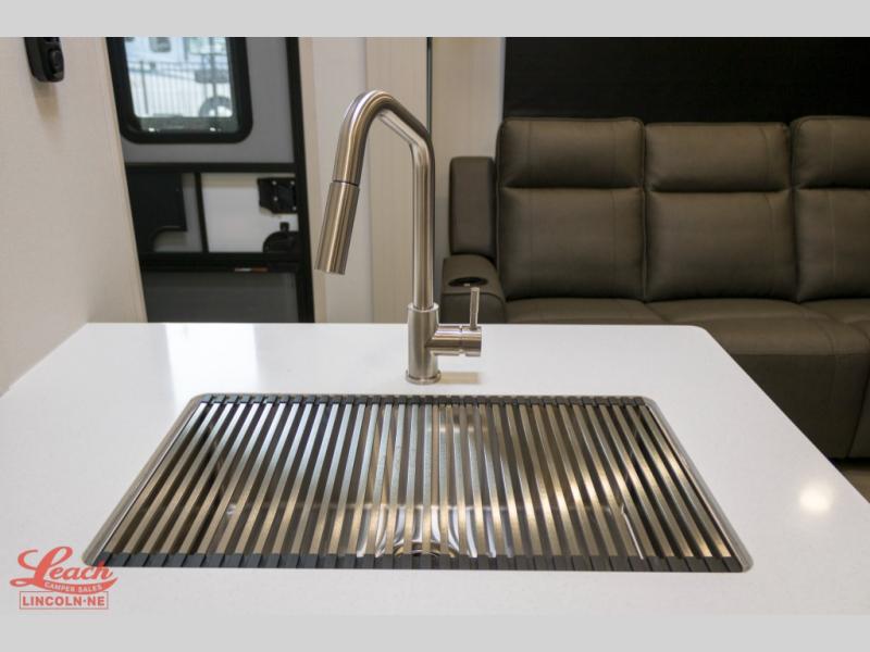 Are you looking for adventure and fun? The Momentum G-Class toy hauler by Grand Design will help you find it! You can explore during any season you choose with the Insulation Package that includes a heated and enclosed underbelly with suspended tanks, a high-capacity furnace, a moisture barrier floor enclosure, and cabinet-mounted heat ducts. Each model includes a fuel station with an interior and exterior gauge, a dovetail rear rend, and 2,500-LB tie-downs anchored into the chassis. Throughout the Momentum G-Class interior, you'll enjoy many comfortable features like large panoramic windows, a shower skylight, USB chargers in the bedroom, and residential cabinetry.