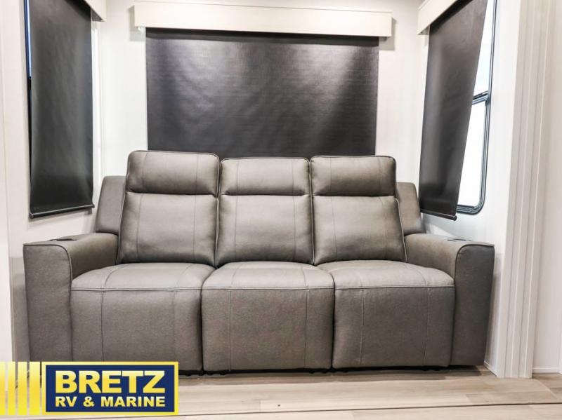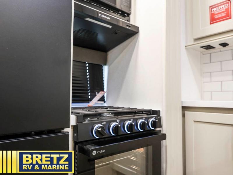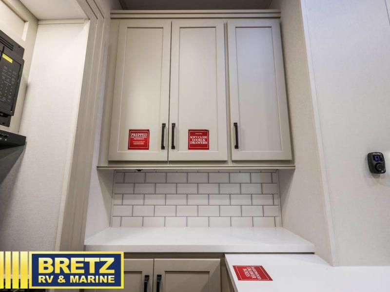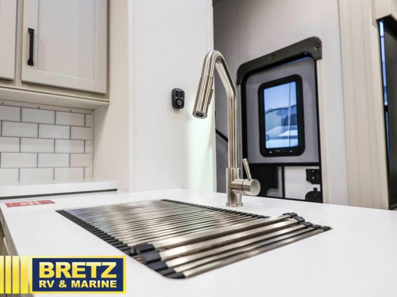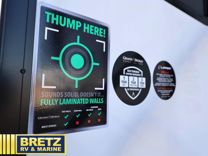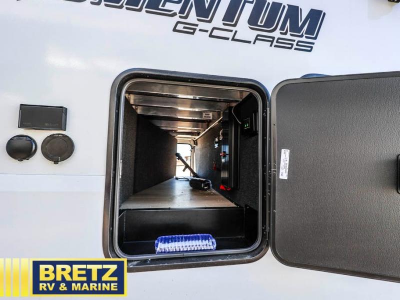 Are you looking for adventure and fun? The Momentum G-Class toy hauler by Grand Design will help you find it! You can explore during any season you choose with the Insulation Package that includes a heated and enclosed underbelly with suspended tanks, a high-capacity furnace, a moisture barrier floor enclosure, and cabinet-mounted heat ducts. Each model includes a fuel station with an interior and exterior gauge, a dovetail rear rend, and 2,500-LB tie-downs anchored into the chassis. Throughout the Momentum G-Class interior, you'll enjoy many comfortable features like large panoramic windows, a shower skylight, USB chargers in the bedroom, and residential cabinetry.