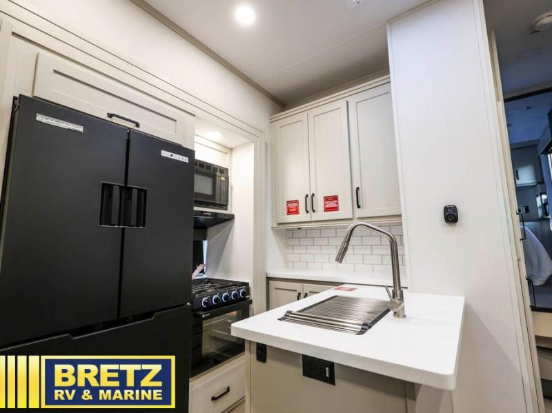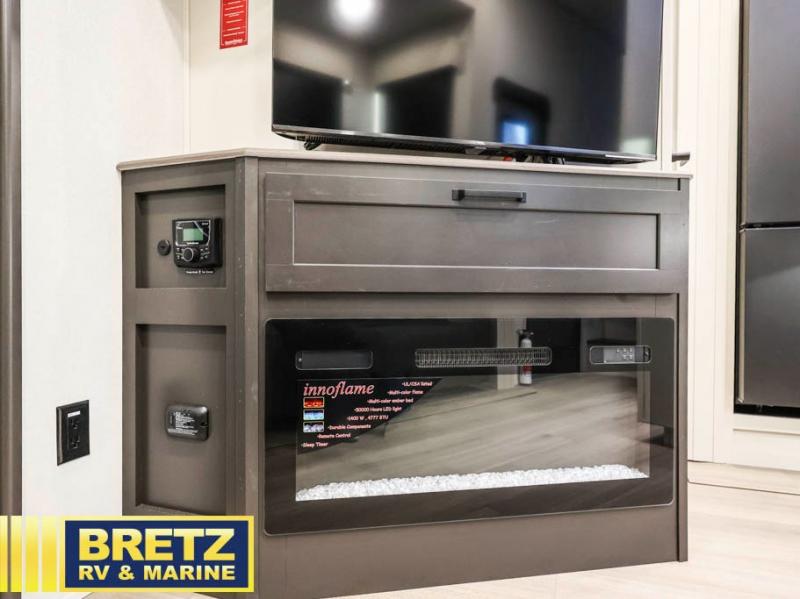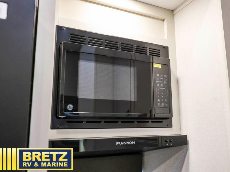 Just imagine the fun you will have with this Momentum G-Class toy hauler set up at any off-road park. With the 14' 6" separate garage that includes a half bath, a second exterior entry door, and a loft, you will have your own area to do what you like. The rear ramp door can even be converted into a patio if you need more outdoor living space. The main living area offers a fireplace, theater seating, and kitchen appliances to make delicious home cooked meals. You will also be able to stay clean and ready for the next ride with the walk-in shower in the full bathroom, and the front master bedroom has plenty of storage for clothing with the wardrobe slide and overhead cabinets.