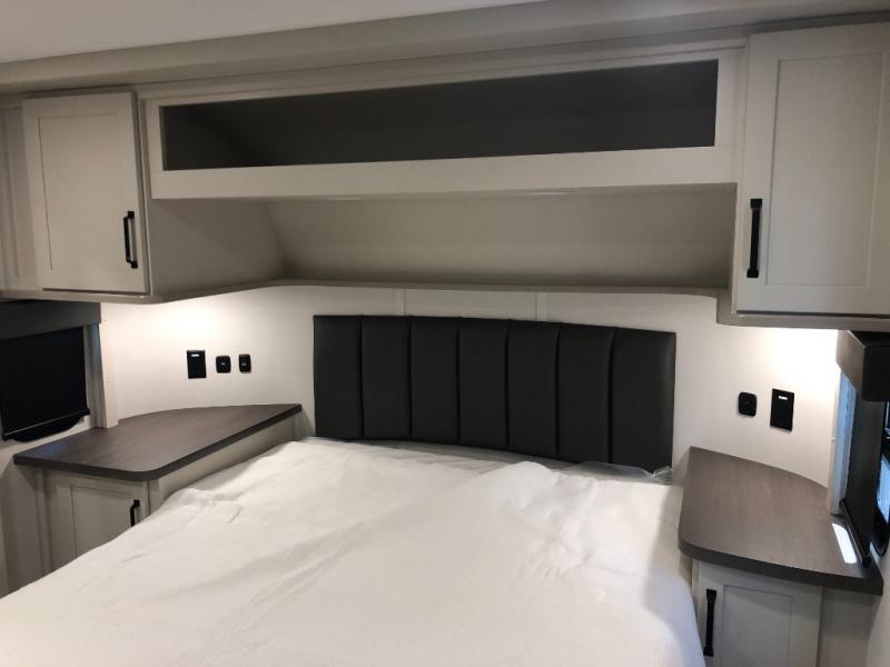 Are you looking for adventure and fun? The Momentum G-Class toy hauler by Grand Design will help you find it! You can explore during any season you choose with the Insulation Package that includes a heated and enclosed underbelly with suspended tanks, a high-capacity furnace, a moisture barrier floor enclosure, and cabinet-mounted heat ducts. Each model includes a fuel station with an interior and exterior gauge, a dovetail rear rend, and 2,500-LB tie-downs anchored into the chassis. Throughout the Momentum G-Class interior, you'll enjoy many comfortable features like large panoramic windows, a shower skylight, USB chargers in the bedroom, and residential cabinetry.