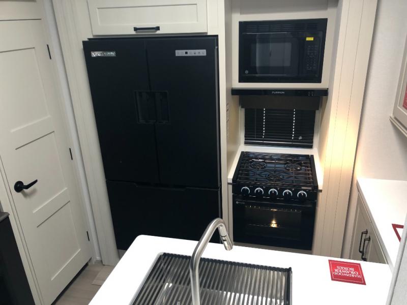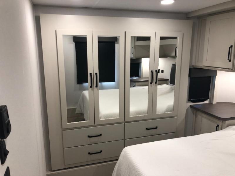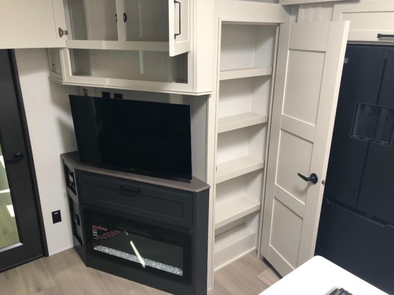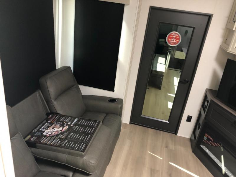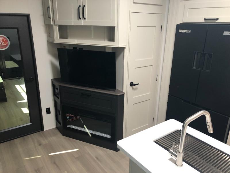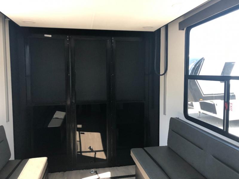 Just imagine the fun you will have with this Momentum G-Class toy hauler set up at any off-road park. With the 14' 6" separate garage that includes a half bath, a second exterior entry door, and a loft, you will have your own area to do what you like. The rear ramp door can even be converted into a patio if you need more outdoor living space. The main living area offers a fireplace, theater seating, and kitchen appliances to make delicious home cooked meals. You will also be able to stay clean and ready for the next ride with the walk-in shower in the full bathroom, and the front master bedroom has plenty of storage for clothing with the wardrobe slide and overhead cabinets.