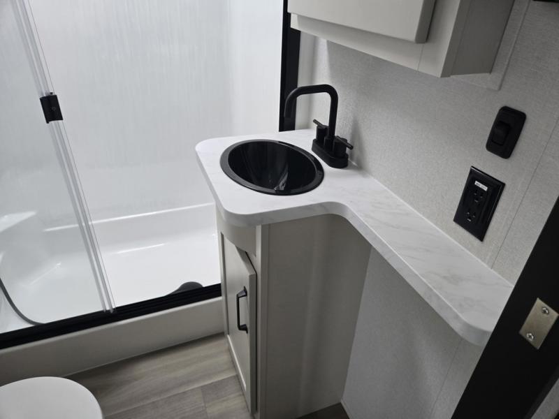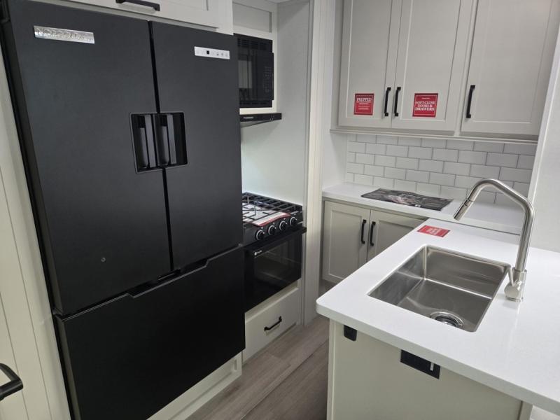 Just imagine the fun you will have with this Momentum G-Class toy hauler set up at any off-road park. With the 14' 6" separate garage that includes a half bath, a second exterior entry door, and a loft, you will have your own area to do what you like. The rear ramp door can even be converted into a patio if you need more outdoor living space. The main living area offers a fireplace, theater seating, and kitchen appliances to make delicious home cooked meals. You will also be able to stay clean and ready for the next ride with the walk-in shower in the full bathroom, and the front master bedroom has plenty of storage for clothing with the wardrobe slide and overhead cabinets.