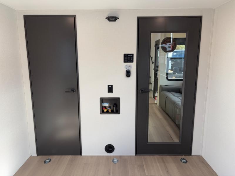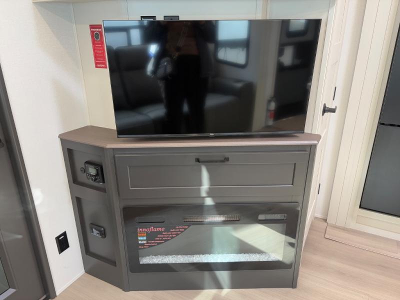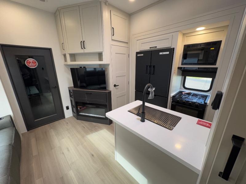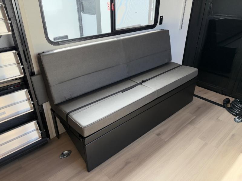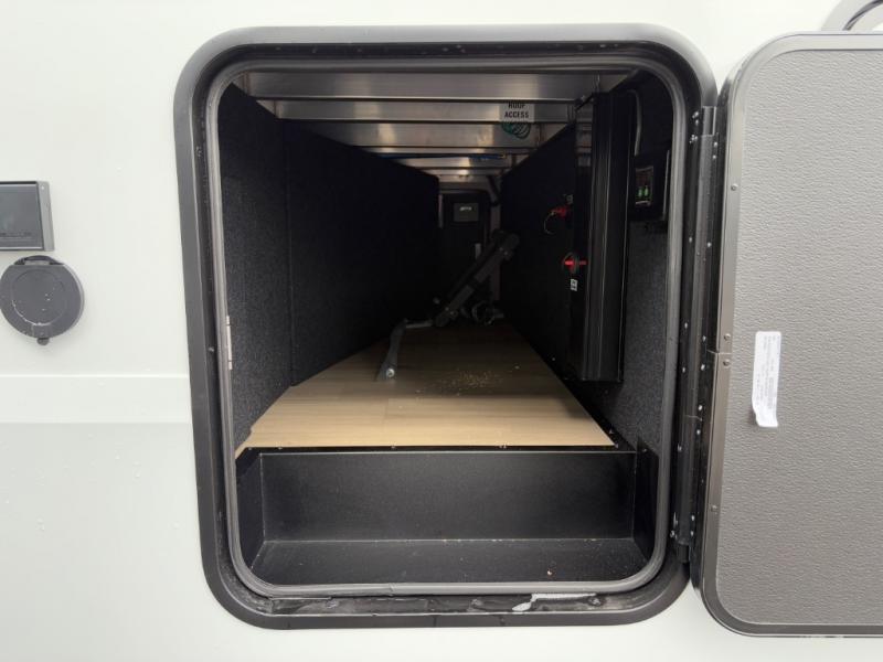Just imagine the fun you will have with this Momentum G-Class toy hauler set up at any off-road park. With the 14' 6" separate garage that includes a half bath, a second exterior entry door, and a loft, you will have your own area to do what you like. The rear ramp door can even be converted into a patio if you need more outdoor living space. The main living area offers a fireplace, theater seating, and kitchen appliances to make delicious home cooked meals. You will also be able to stay clean and ready for the next ride with the walk-in shower in the full bathroom, and the front master bedroom has plenty of storage for clothing with the wardrobe slide and overhead cabinets.