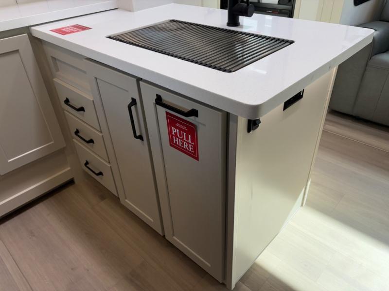 Are you looking for adventure and fun? The Momentum G-Class toy hauler by Grand Design will help you find it! You can explore during any season you choose with the Insulation Package that includes a heated and enclosed underbelly with suspended tanks, a high-capacity furnace, a moisture barrier floor enclosure, and cabinet-mounted heat ducts. Each model includes a fuel station with an interior and exterior gauge, a dovetail rear rend, and 2,500-LB tie-downs anchored into the chassis. Throughout the Momentum G-Class interior, you'll enjoy many comfortable features like large panoramic windows, a shower skylight, USB chargers in the bedroom, and residential cabinetry.