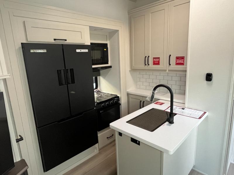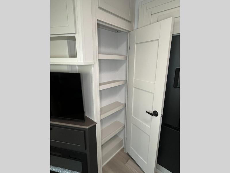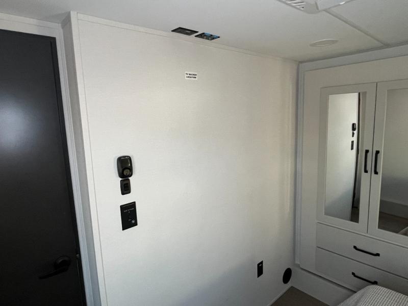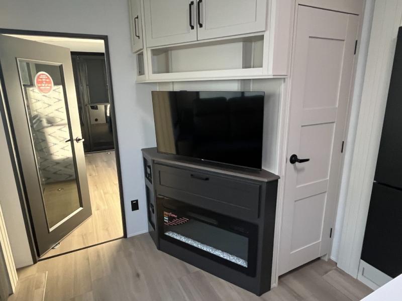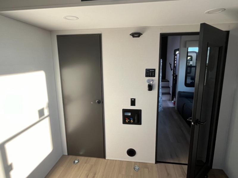 Just imagine the fun you will have with this Momentum G-Class toy hauler set up at any off-road park. With the 14' 6" separate garage that includes a half bath, a second exterior entry door, and a loft, you will have your own area to do what you like. The rear ramp door can even be converted into a patio if you need more outdoor living space. The main living area offers a fireplace, theater seating, and kitchen appliances to make delicious home cooked meals. You will also be able to stay clean and ready for the next ride with the walk-in shower in the full bathroom, and the front master bedroom has plenty of storage for clothing with the wardrobe slide and overhead cabinets.