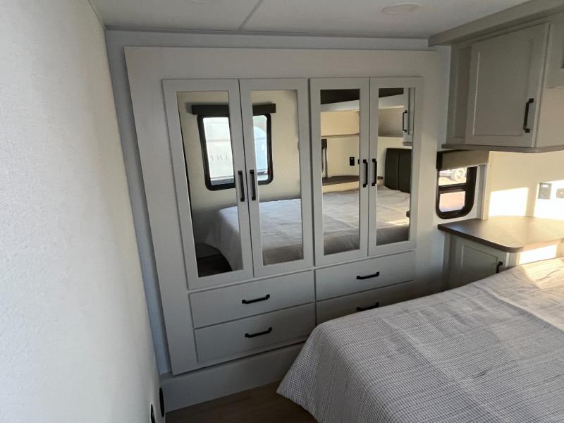 Are you looking for adventure and fun? The Momentum G-Class toy hauler by Grand Design will help you find it! You can explore during any season you choose with the Insulation Package that includes a heated and enclosed underbelly with suspended tanks, a high-capacity furnace, a moisture barrier floor enclosure, and cabinet-mounted heat ducts. Each model includes a fuel station with an interior and exterior gauge, a dovetail rear rend, and 2,500-LB tie-downs anchored into the chassis. Throughout the Momentum G-Class interior, you'll enjoy many comfortable features like large panoramic windows, a shower skylight, USB chargers in the bedroom, and residential cabinetry.