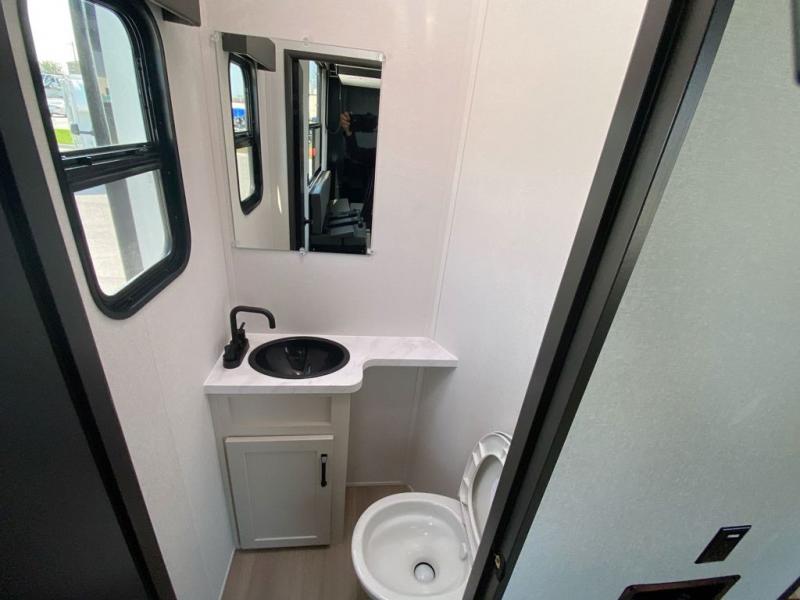 Just imagine the fun you will have with this Momentum G-Class toy hauler set up at any off-road park. With the 14' 6" separate garage that includes a half bath, a second exterior entry door, and a loft, you will have your own area to do what you like. The rear ramp door can even be converted into a patio if you need more outdoor living space. The main living area offers a fireplace, theater seating, and kitchen appliances to make delicious home cooked meals. You will also be able to stay clean and ready for the next ride with the walk-in shower in the full bathroom, and the front master bedroom has plenty of storage for clothing with the wardrobe slide and overhead cabinets.