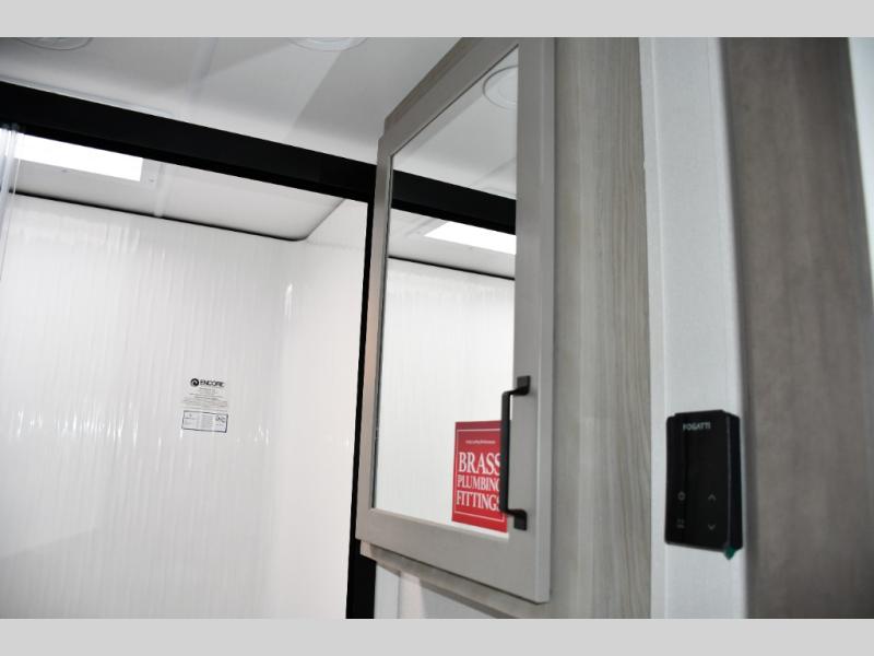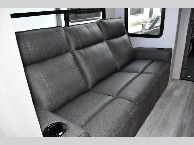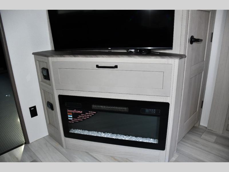 Stretch out in theater seating while you enjoy your fireplace and LED TV. Large panoramic windows frame your campsite and keep you connected to nature.